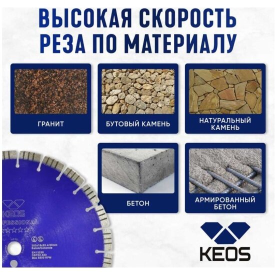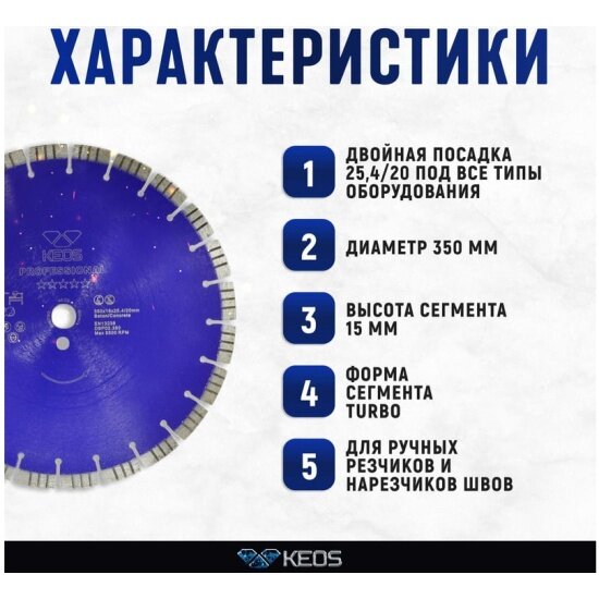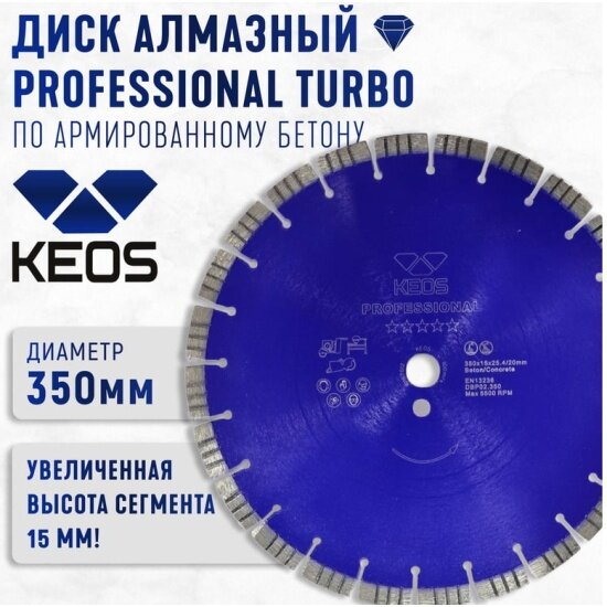Диск алмазный KEOS Professional сегментный (бетон) 350мм/25.4/20 интересное: