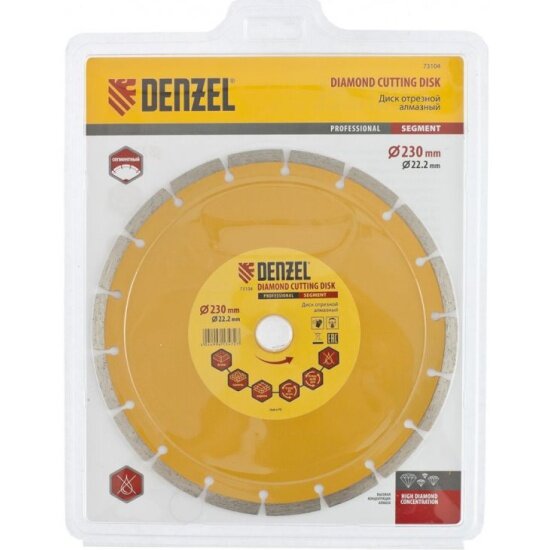 Диск алмазный отрезной Denzelф230 х 22 2 мм, Сегментный, сухое резание 73104