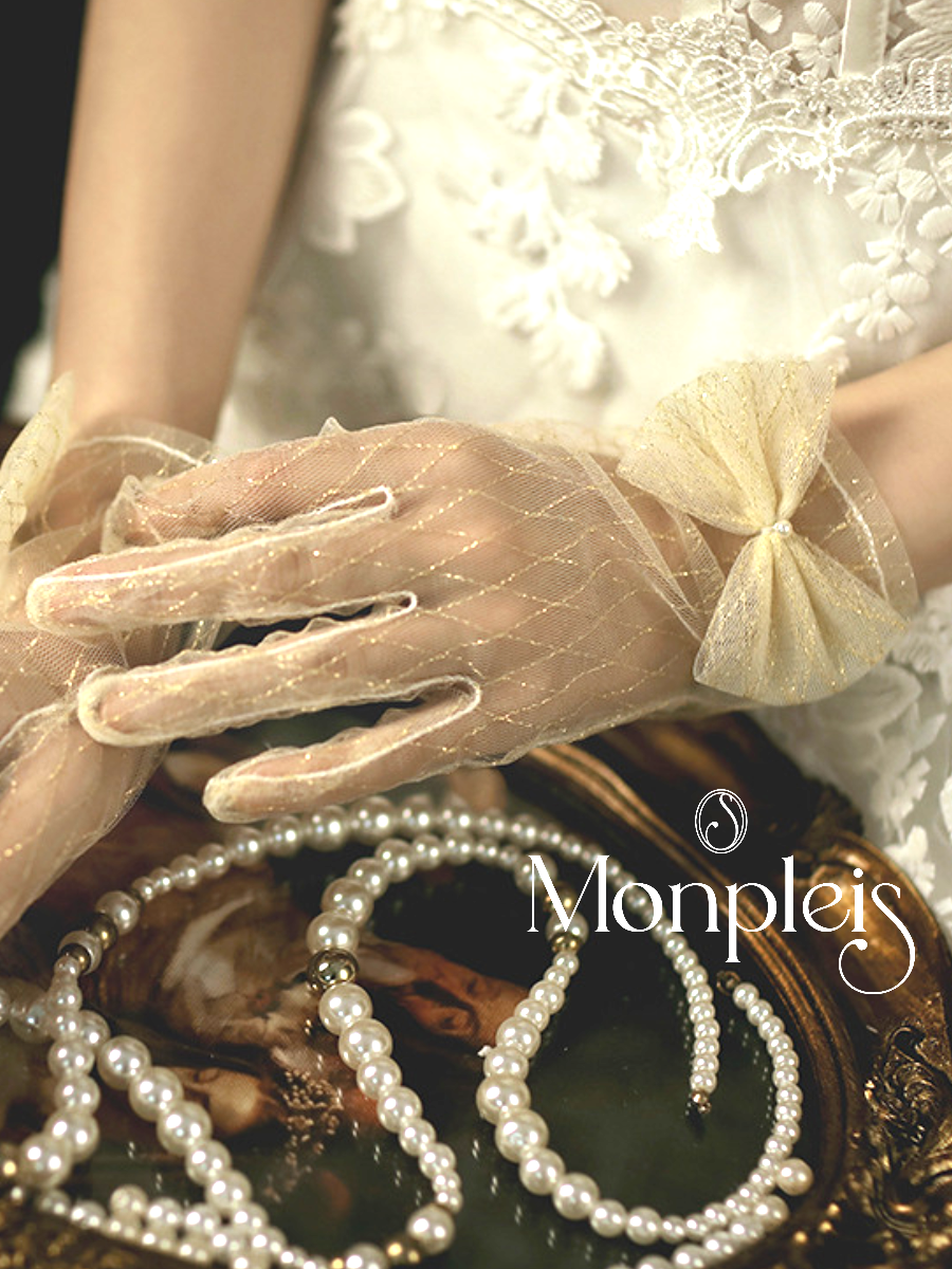 Купить Перчатки MONPLEIS Вечерняя коллекция для женщин, размер onesize (7-8), бежевый, золотой