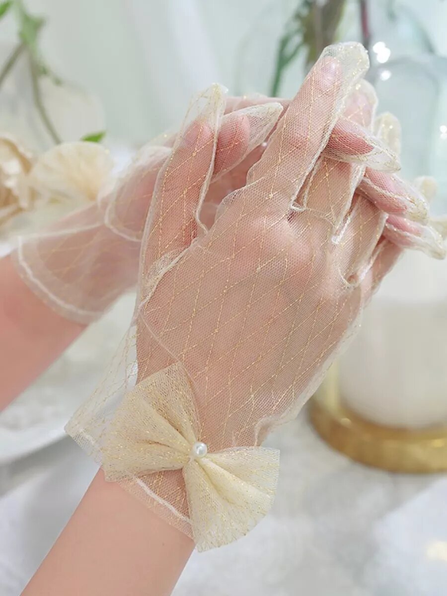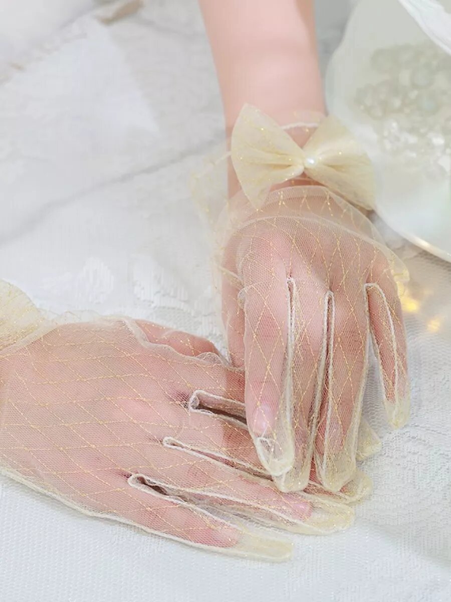 Перчатки MONPLEIS Вечерняя коллекция для женщин, размер onesize (7-8), бежевый, золотой интересное: