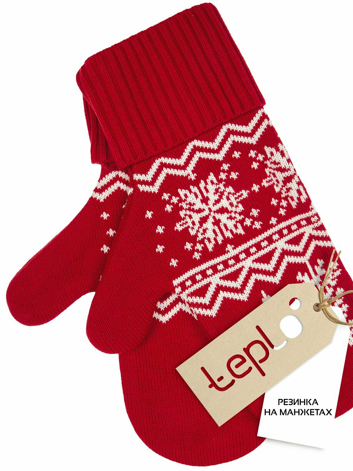 Варежки teplo для женщин, размер L/XL, белый, красный интересное: