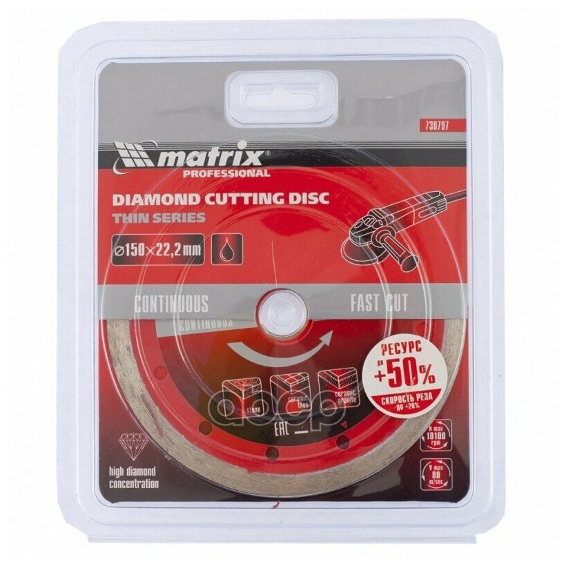Круг алмазный сплошной Matrix Professional для влажной резки, тонкий, 150 x 22,2 мм