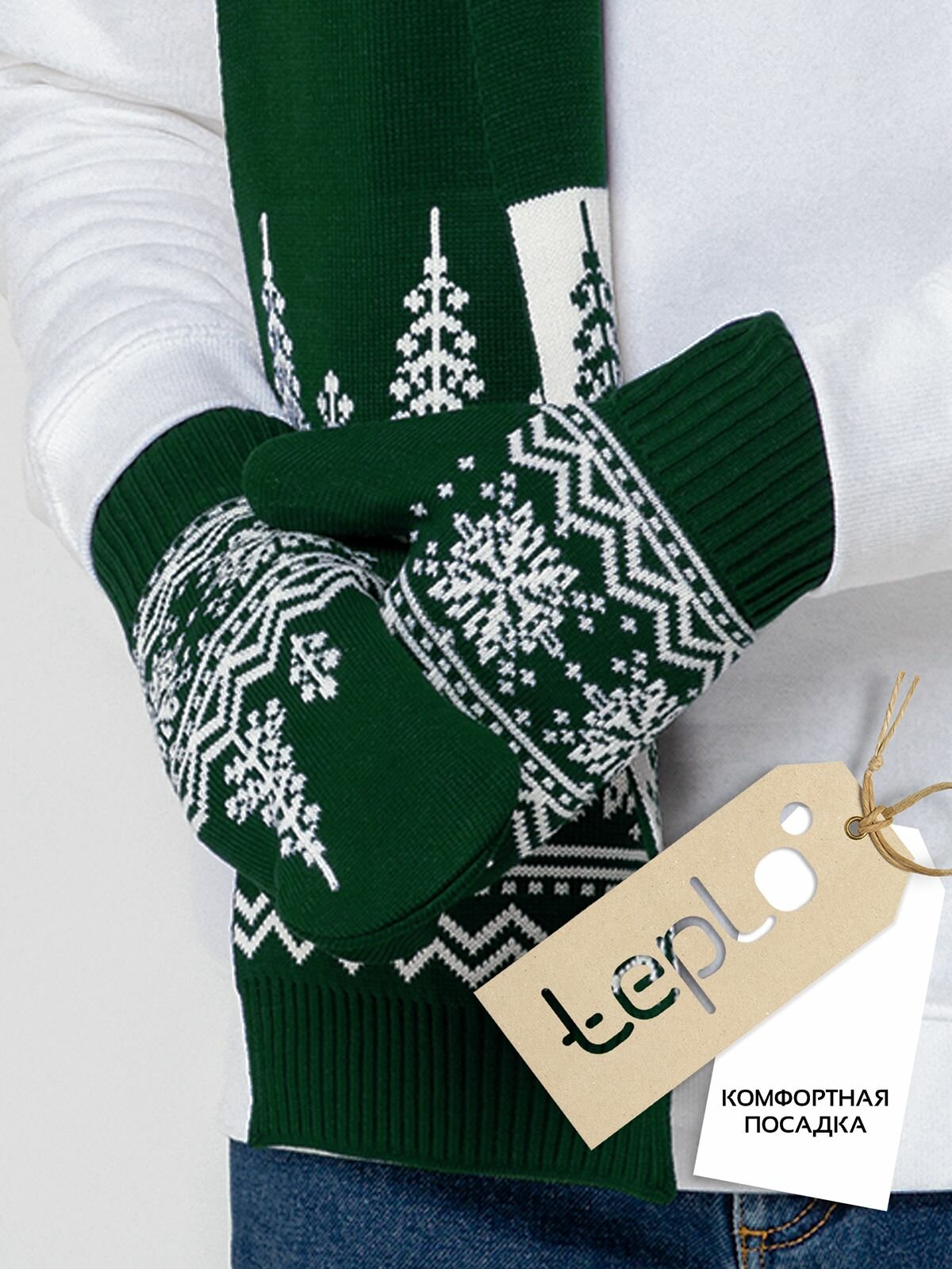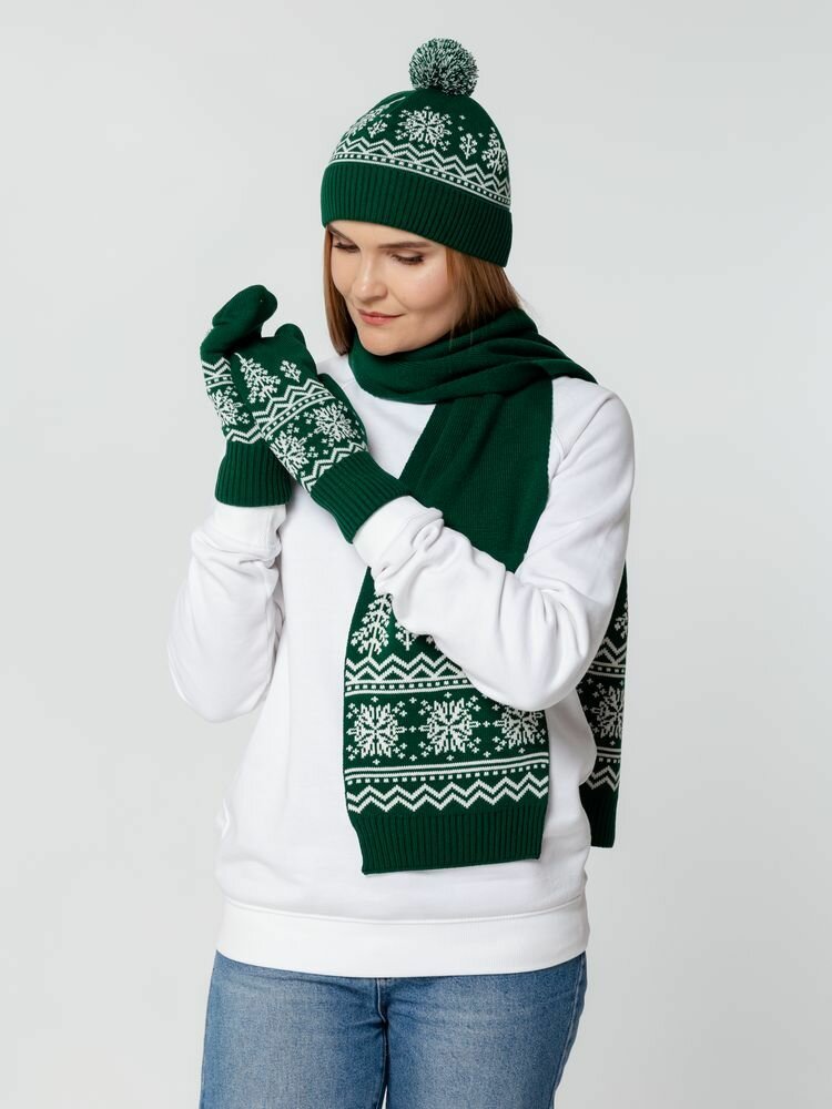 Варежки teplo для женщин, размер L/XL, зеленый, белый интересное: