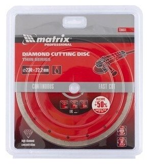 Круг алмазный сплошной Matrix Professional для влажной резки, тонкий, 230 x 22,2 мм