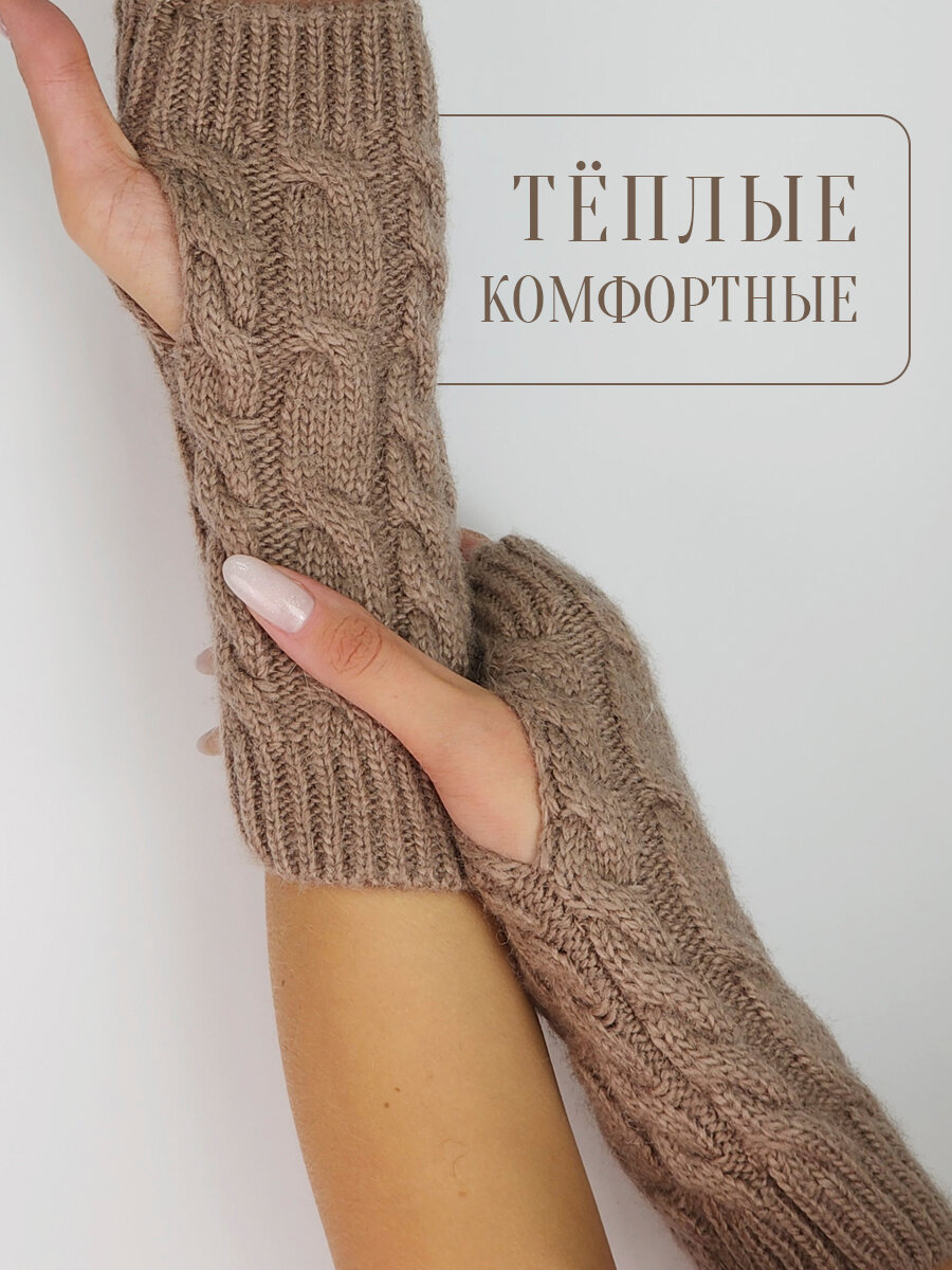 Митенки Философия уюта для женщин, размер 20, коричневый светлый интересное: