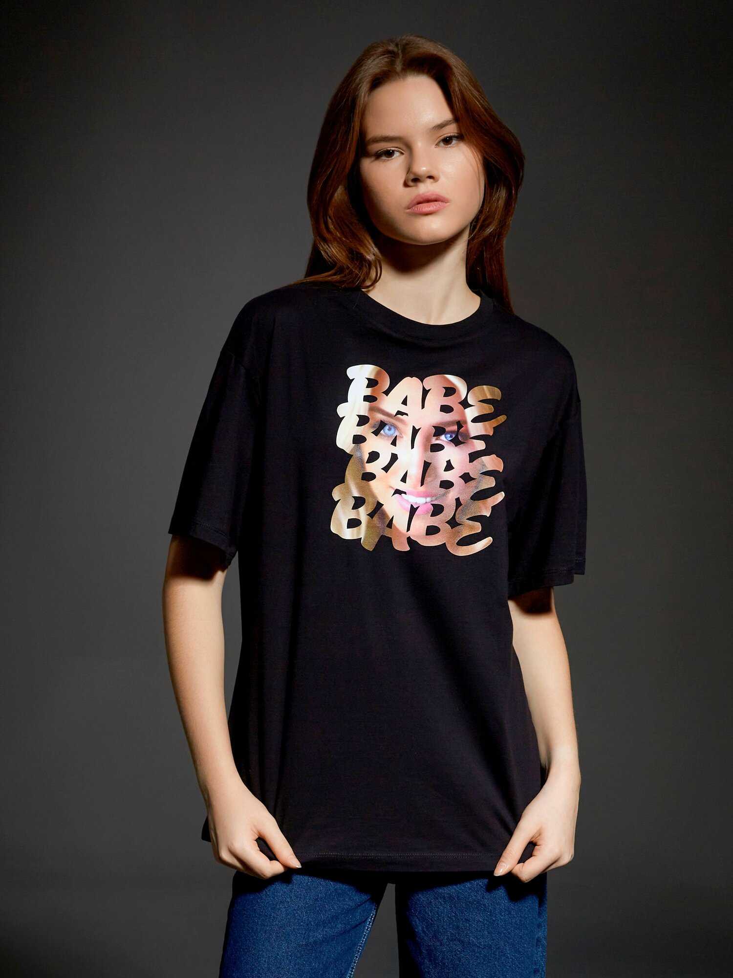 Футболка Crazy Getup Базовая коллекция, размер 170, черный, розовый, серый