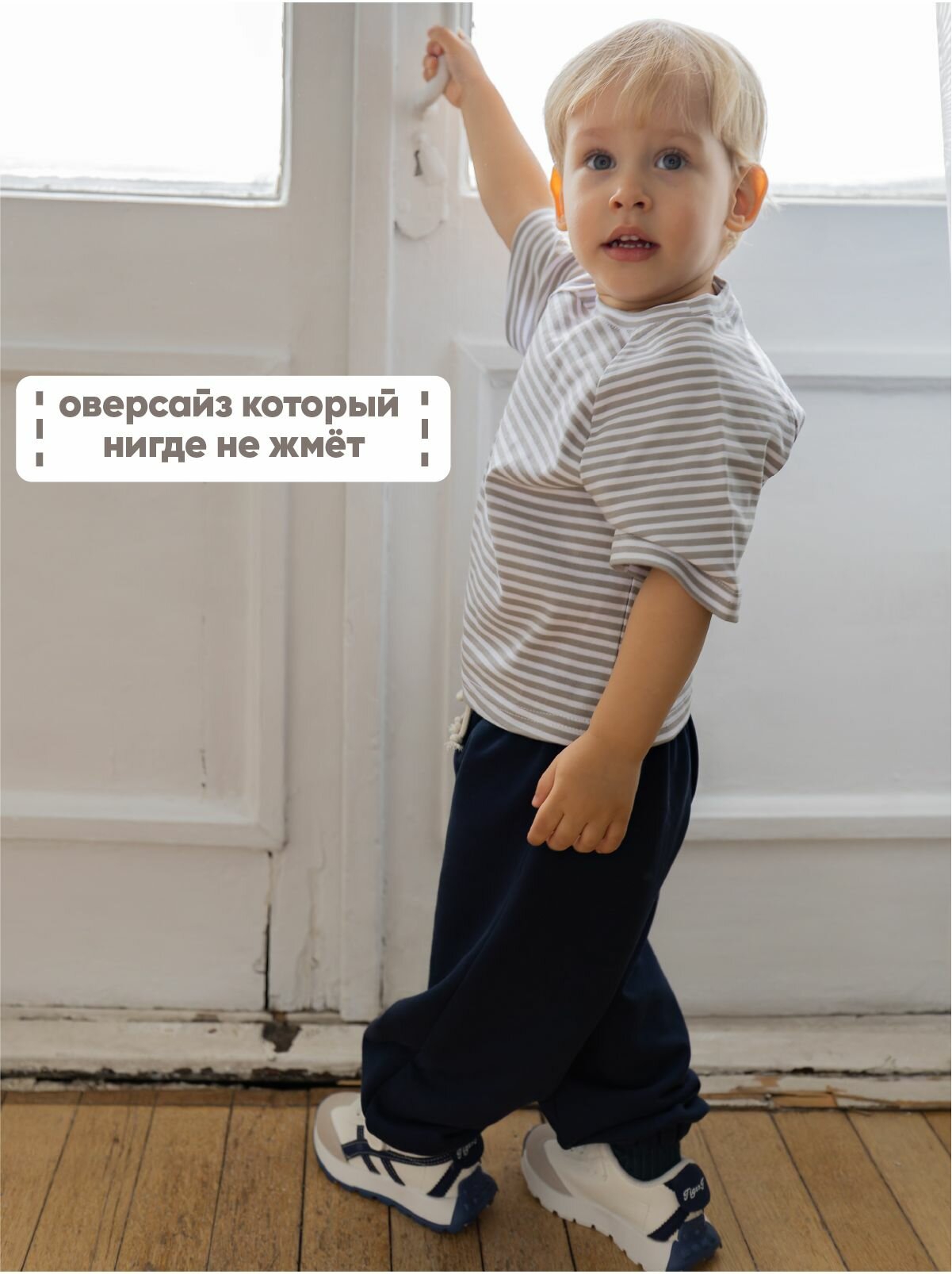 Футболка рубибуби новая коллекция, футболка оверсайз, размер 80-86, белый/серая полоска