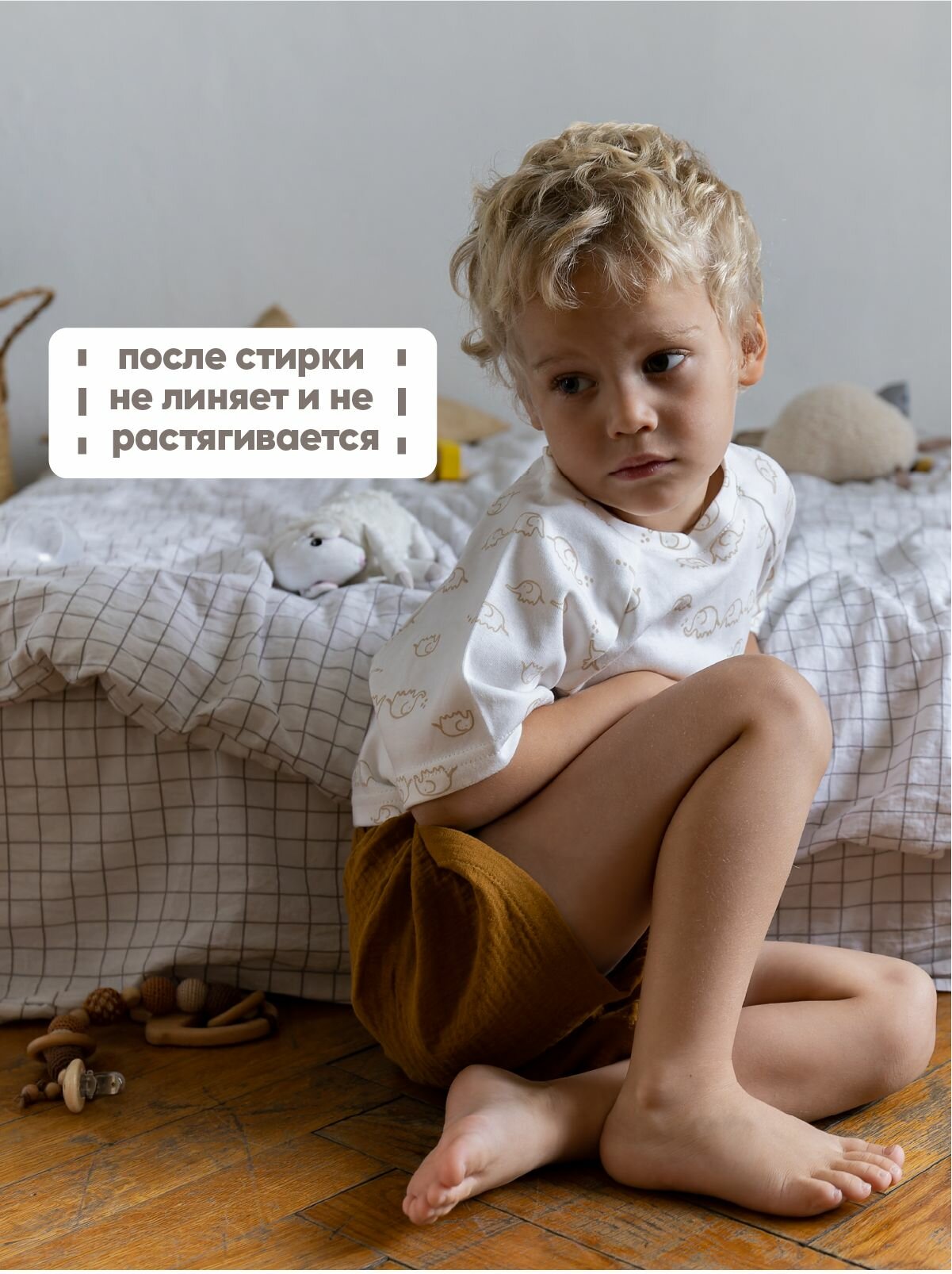 Футболка рубибуби новая коллекция, футболка оверсайз, размер 92-98р, молочный/коричневый