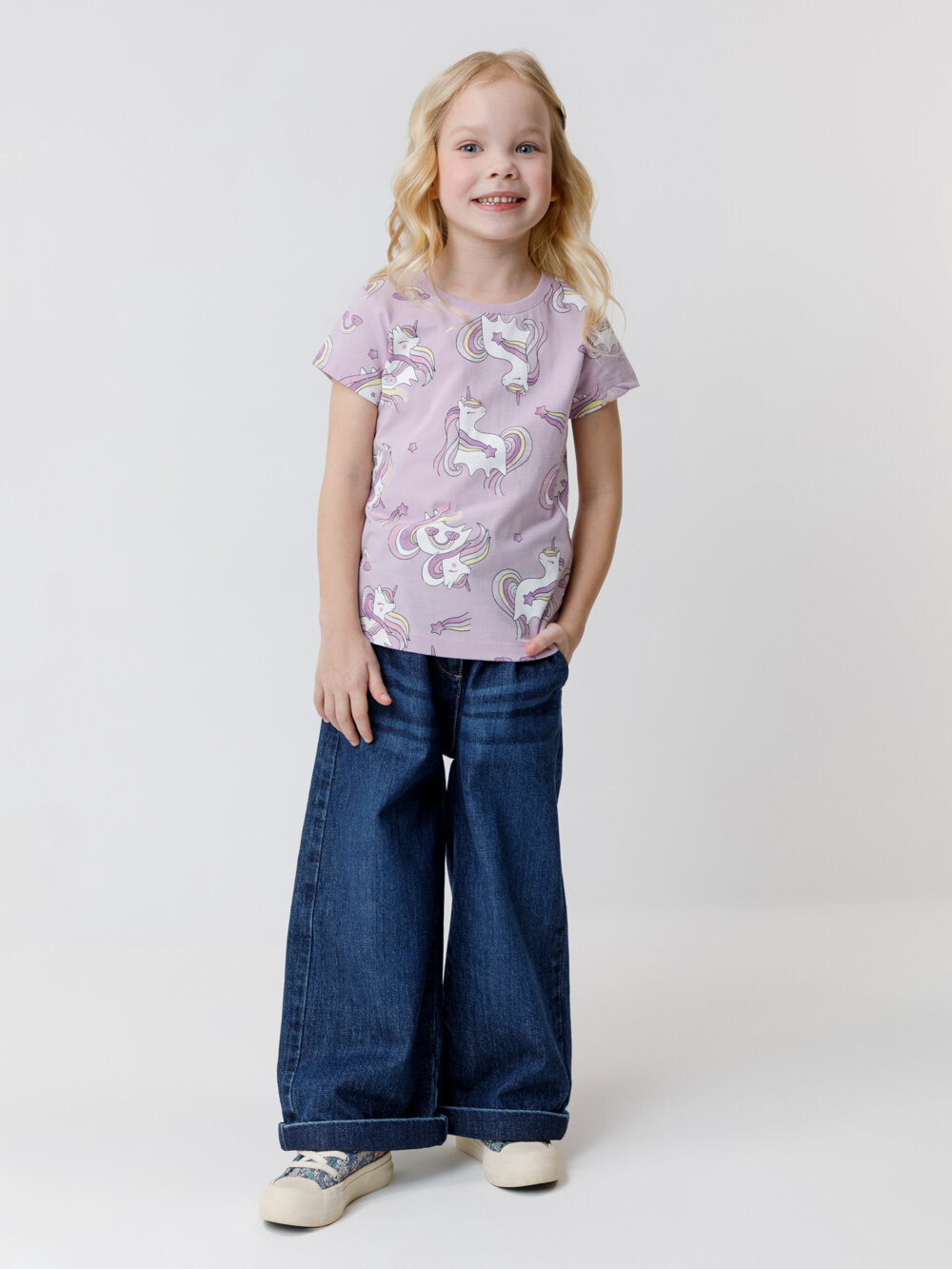 Футболка crockid КР 302326-1/ледяная орхидея,единороги к539, размер 68/134, фиолетовый
