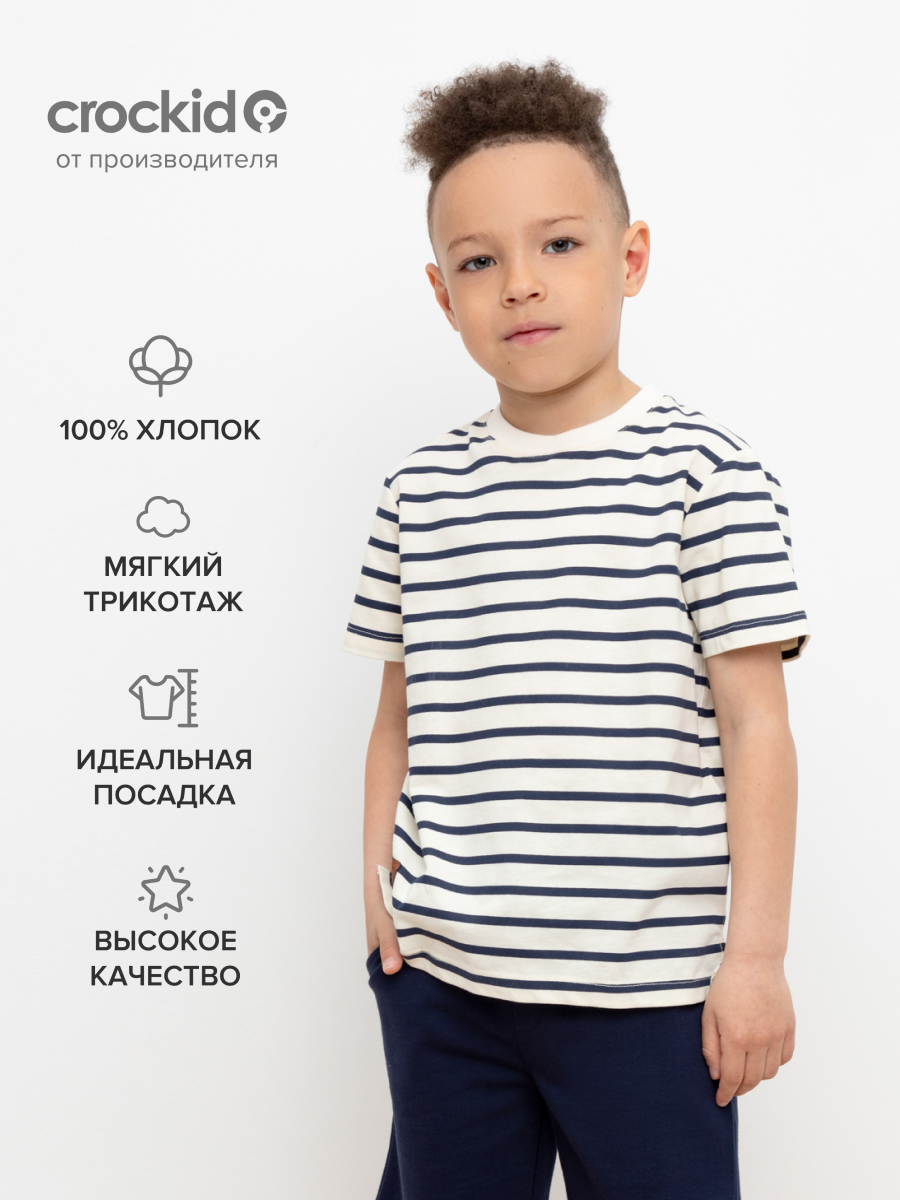 Футболка crockid КР 302216/теплое молоко,полоска, размер 56/110, синий, белый интересное: