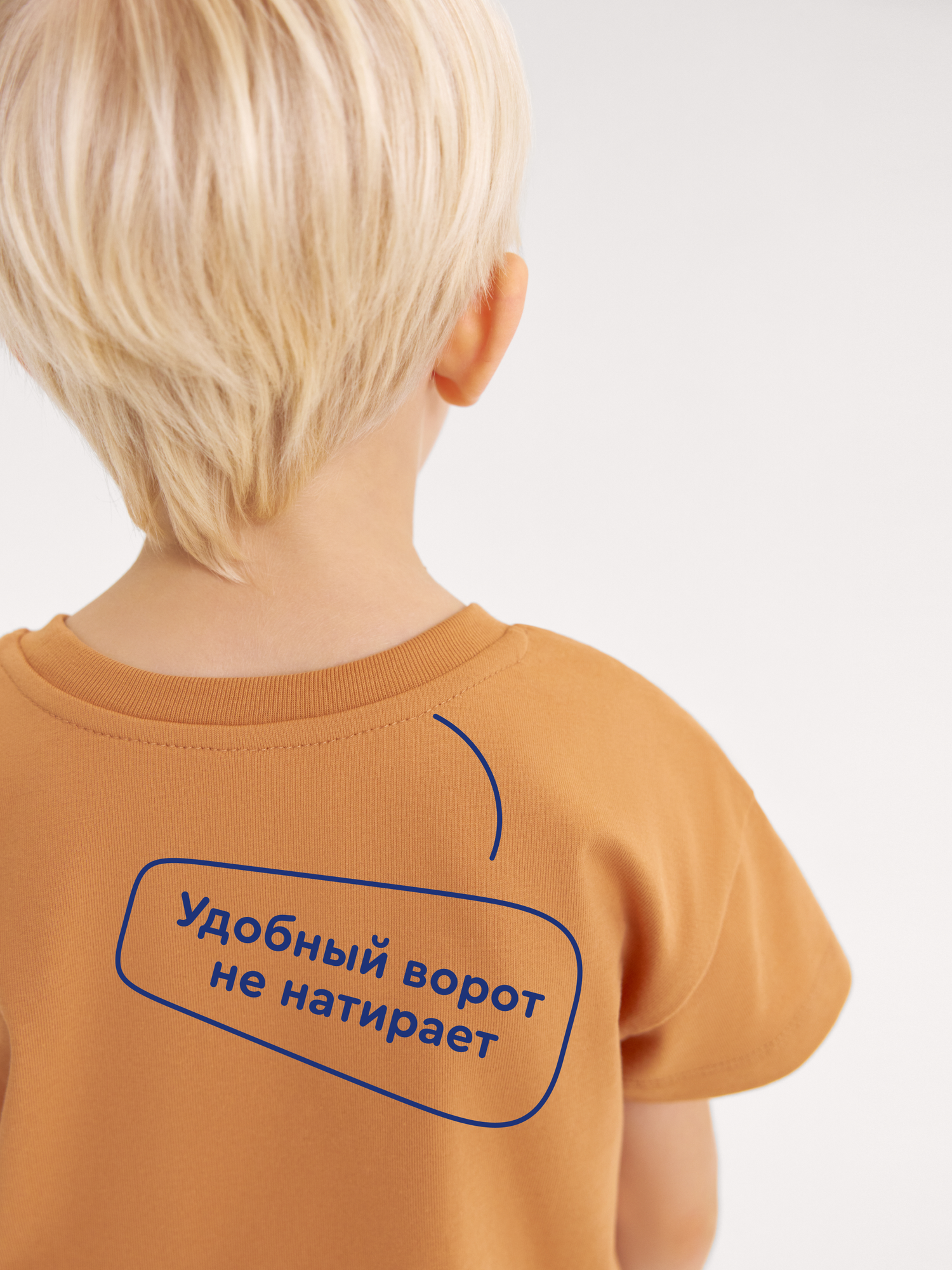 Футболка Junion Regular с принтом, размер 92, бежевый