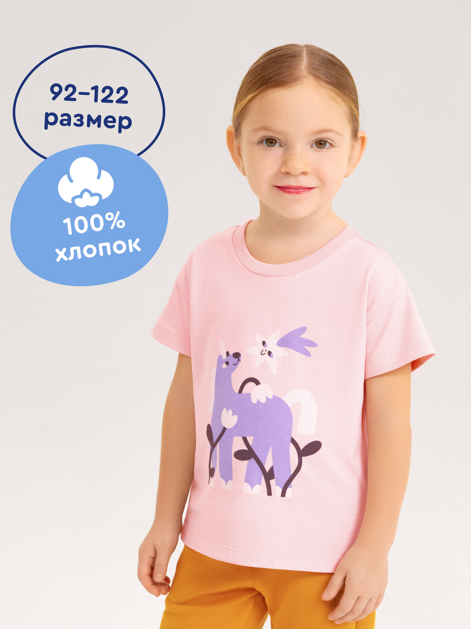 Купить Футболка Junion Regular с принтом, размер 104, розовый