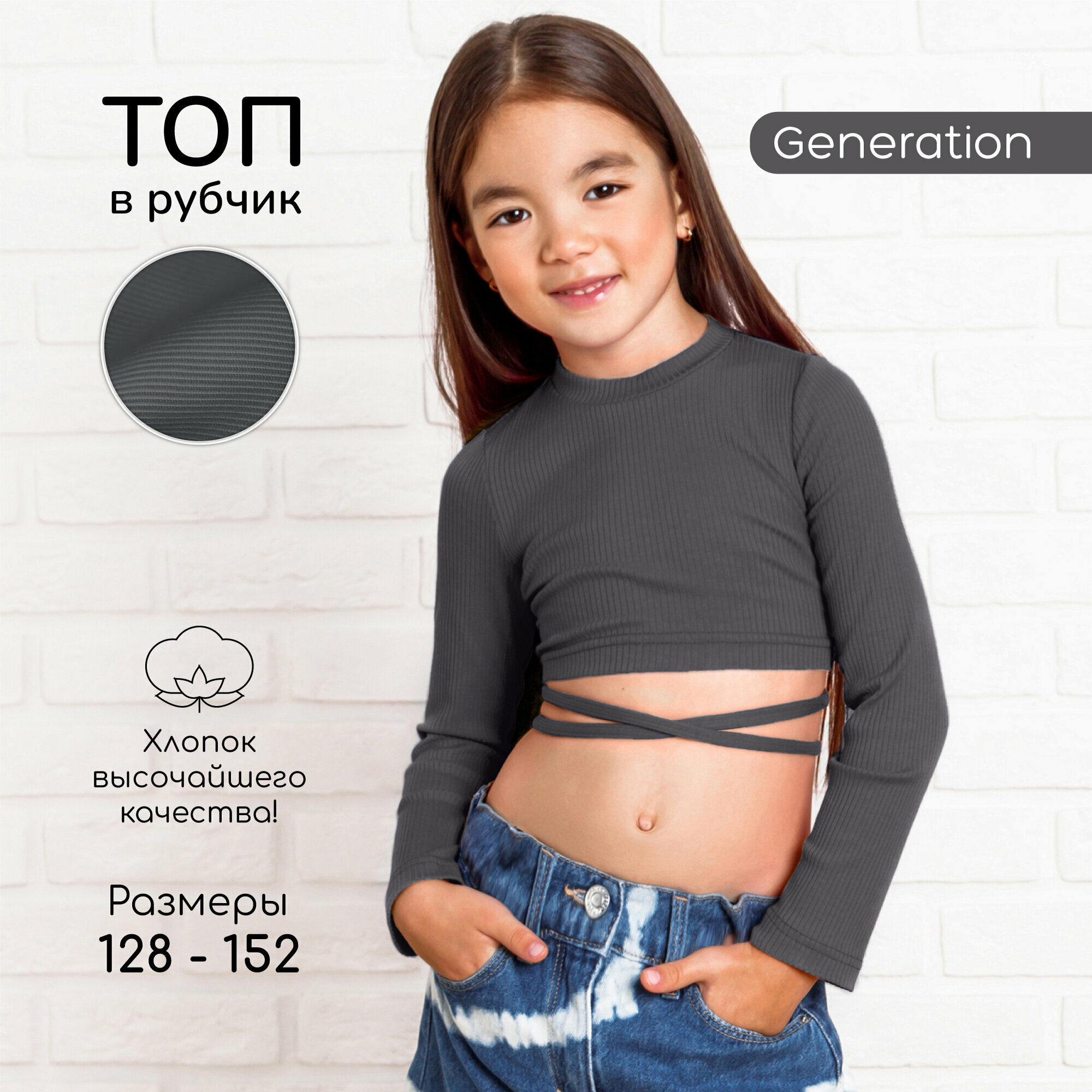 Кроп-топ Amarobaby Generation, размер 128, graphite