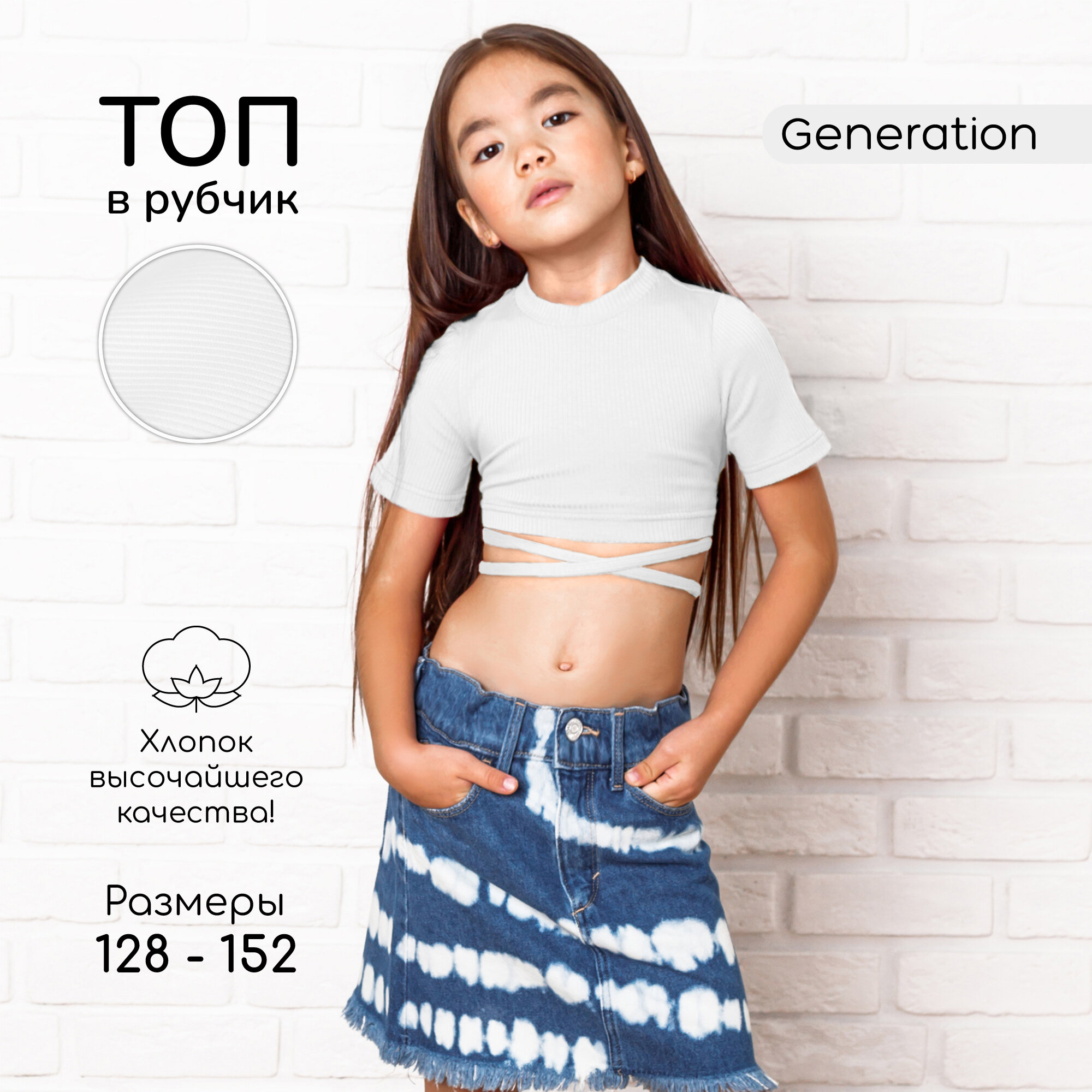 Кроп-топ Amarobaby Generation, размер 128, белый интересное: