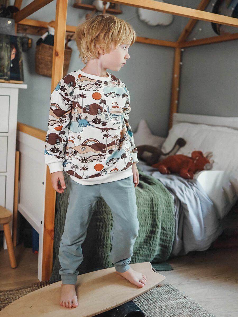 Брюки Mjolk, размер 128, белый, коричневый, голубой