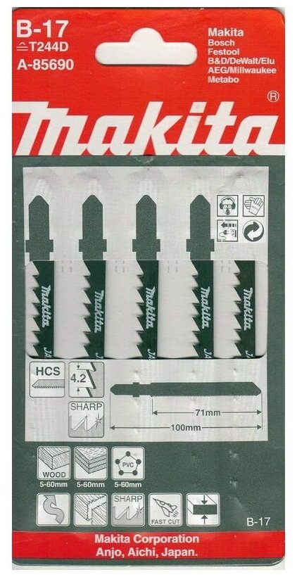 Набор пилок по дереву Makita B-17 5пред. (лобзики) A-85690