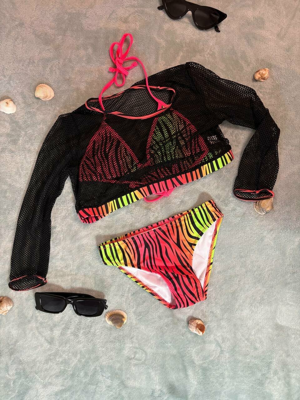 Купальник Зебра зел-жел-роз, 2 шт., размер 34, желтый, зеленый, розовый