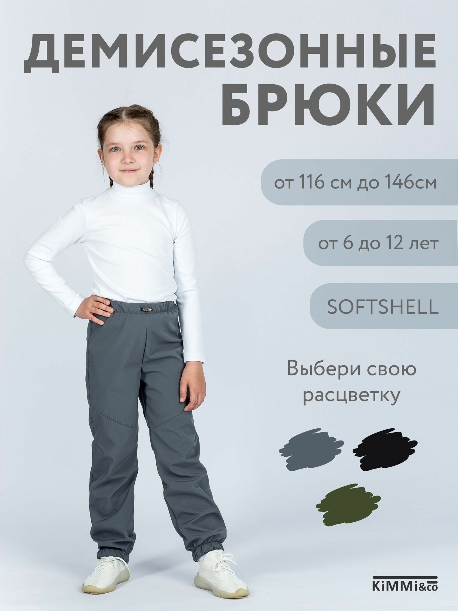 Брюки утеплённые KiMMi & co размер 72 (рост 146), , черный