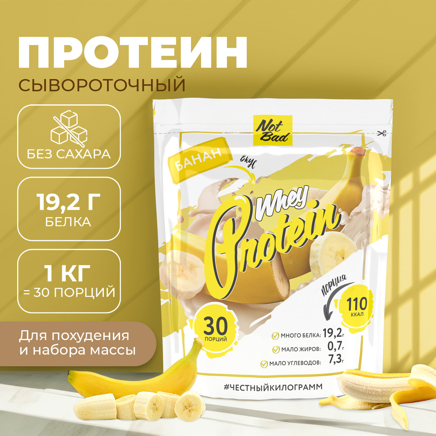 Купить NOTBAD Whey Protein 1000 г (Банан)