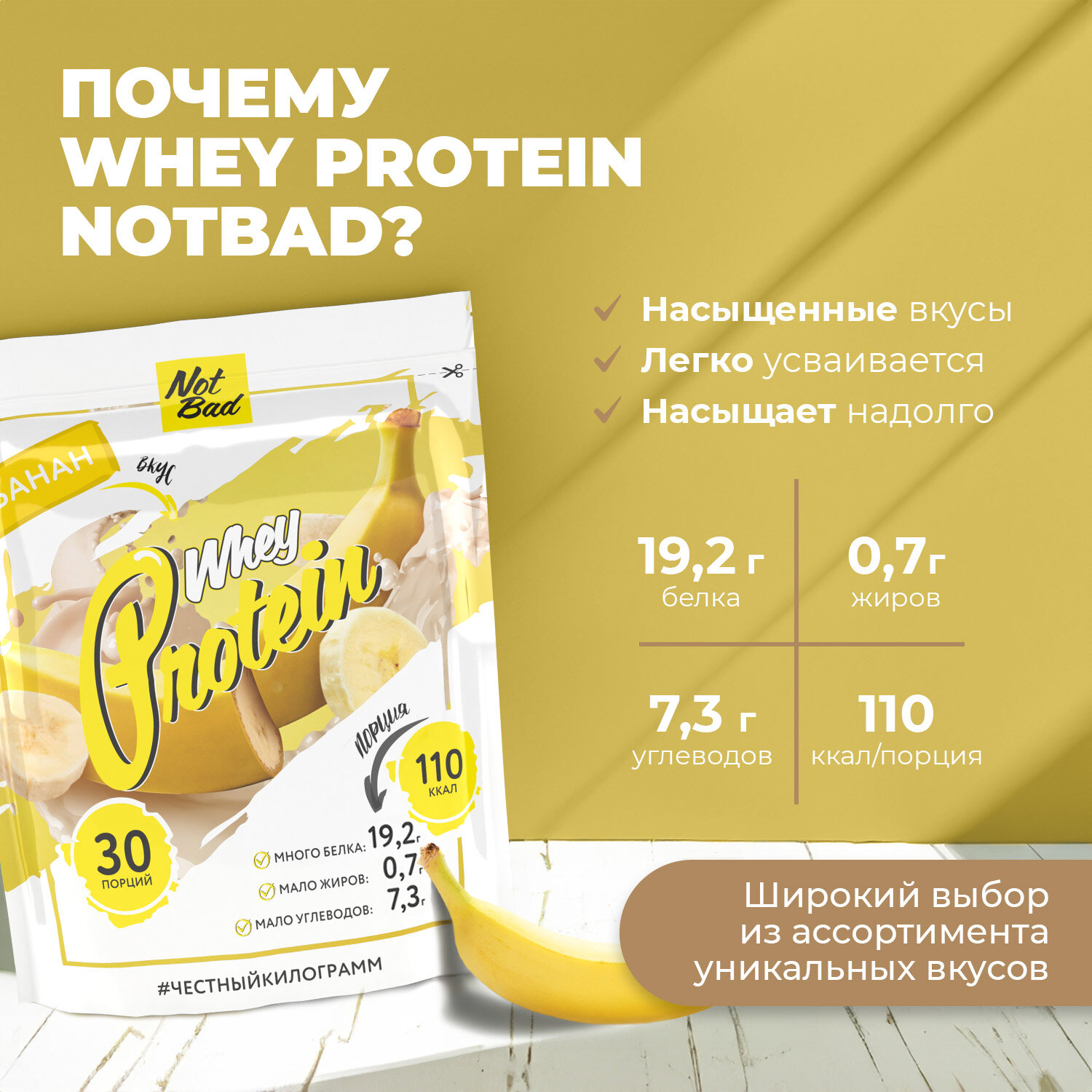 СохранитьNOTBAD Whey Protein 1000 г (Банан) интересное: