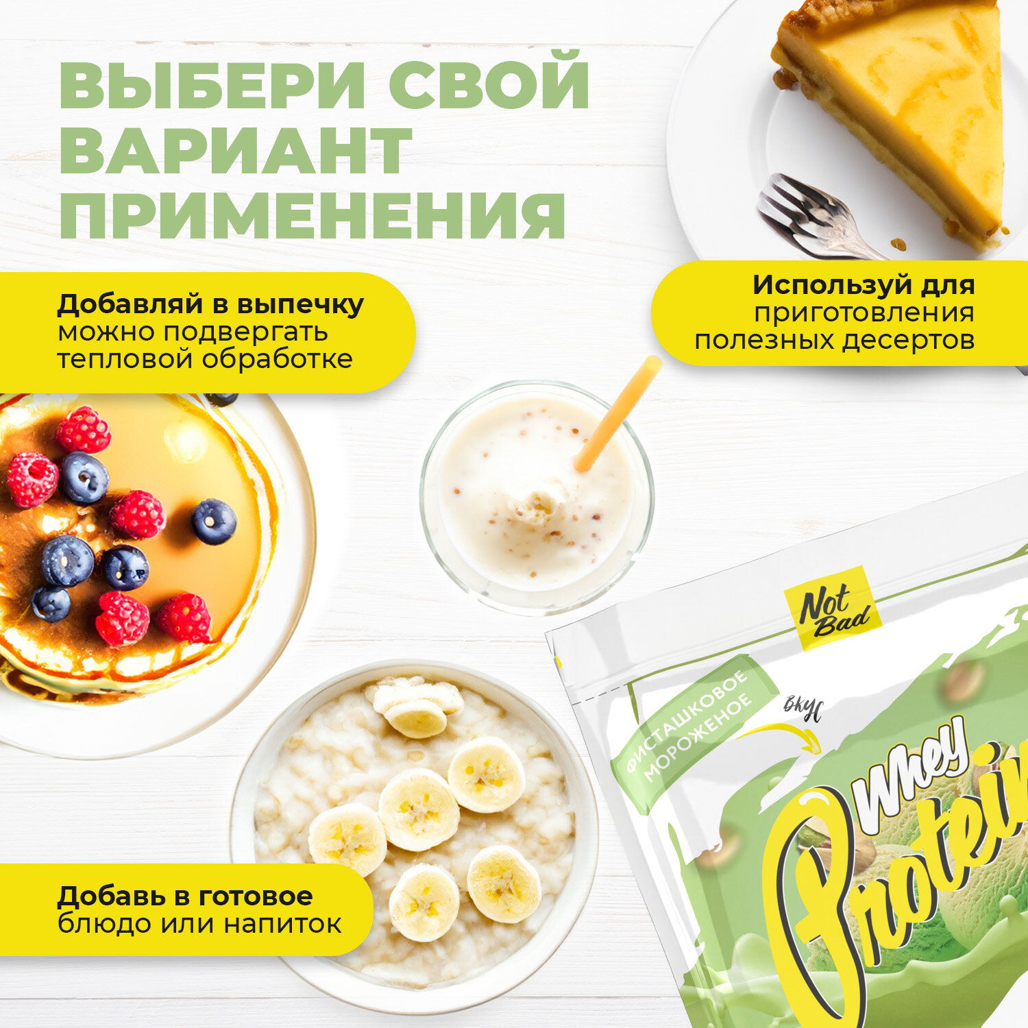 Протеин сывороточный NOTBAD Whey Protein 1000 г (Фисташковое мороженое)