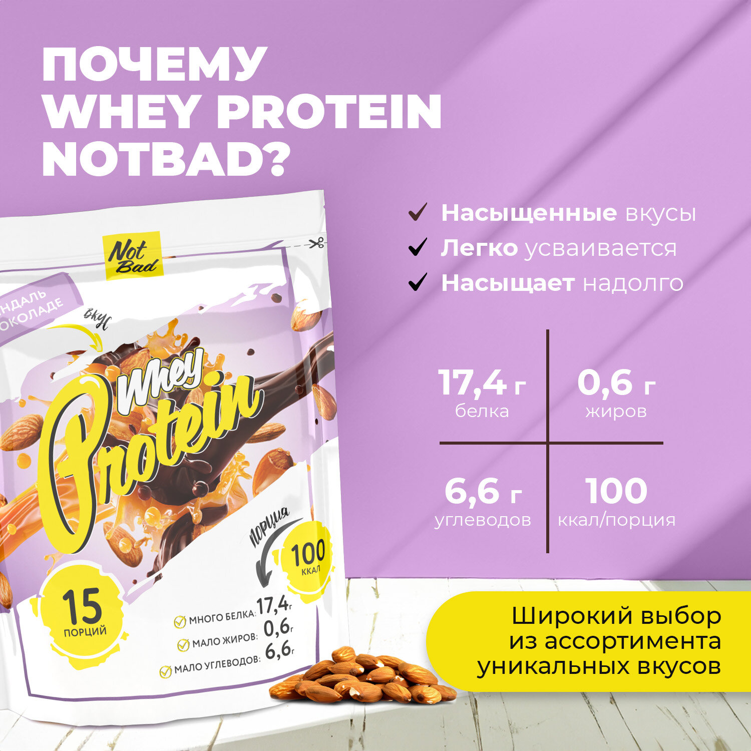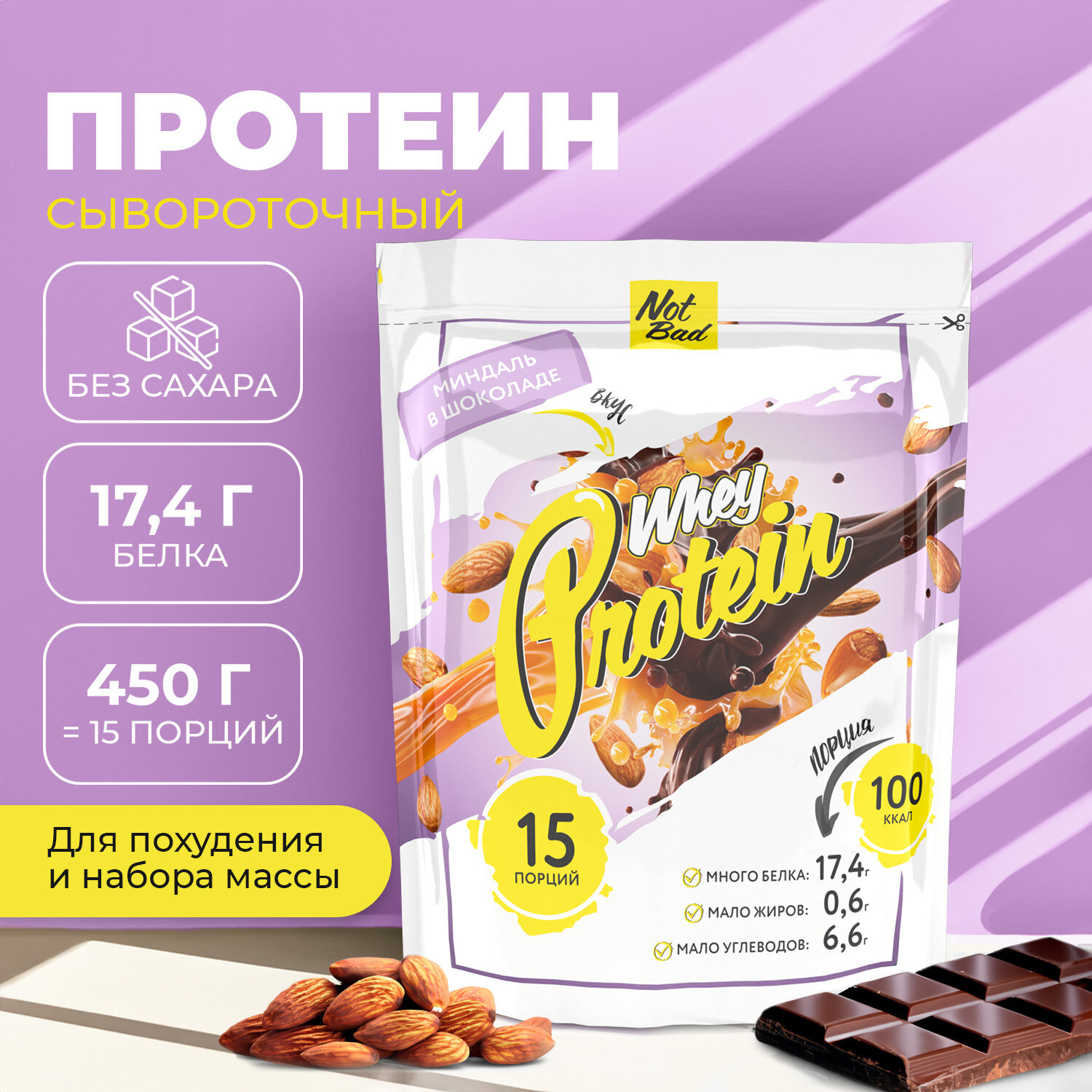Купить NOTBAD Whey Protein 450 г (Миндаль в шоколаде)