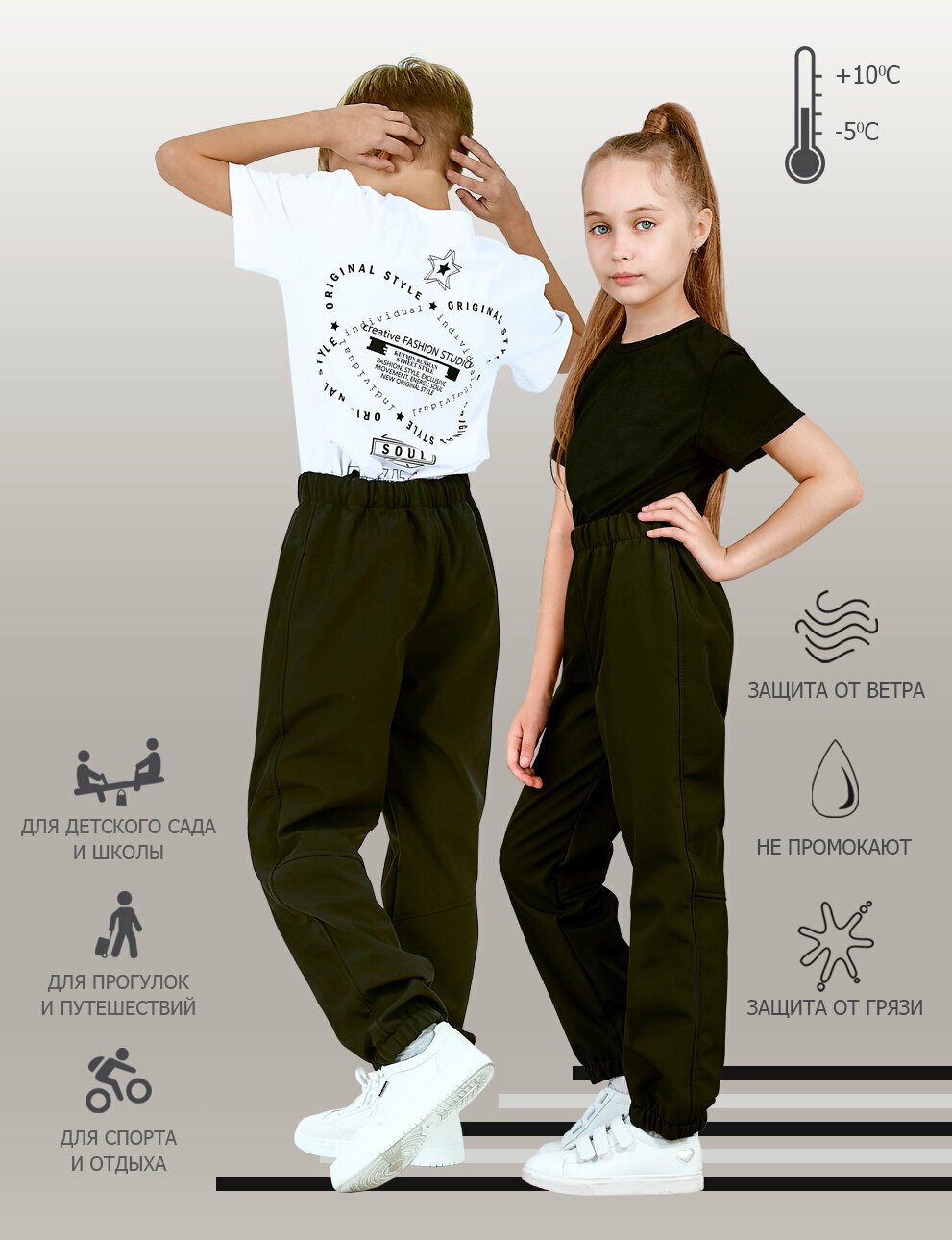 Брюки утеплённые KETMIN демисезонные детские на флисе мембрана, размер 104, , хаки