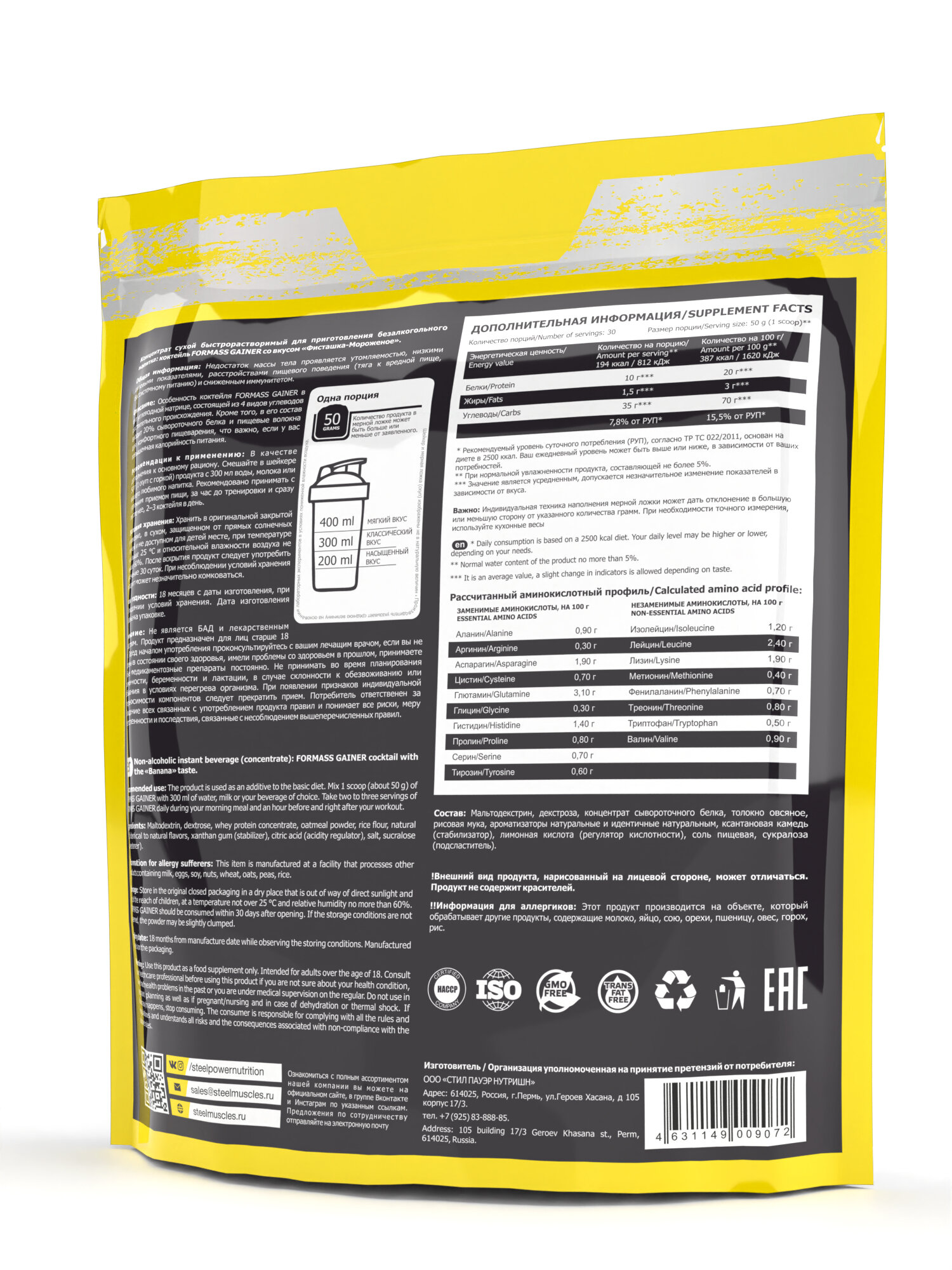 Купить STEEL POWER For Mass Gainer 1,5 кг (Малый пакет) (Фисташка)
