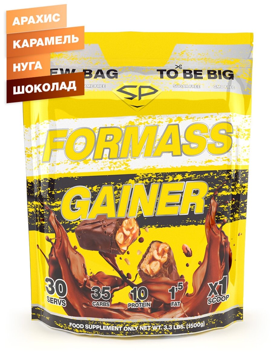 Гейнер STEELPOWER для набора мышечной массы FORMASS GAINER, 1500 грамм, со вкусом Шоколад Арахис Карамель (сникерс)