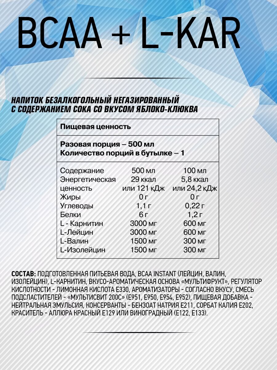 Напиток BCAA + L-Kar, 500 мл, Grape / Виноград интересное:
