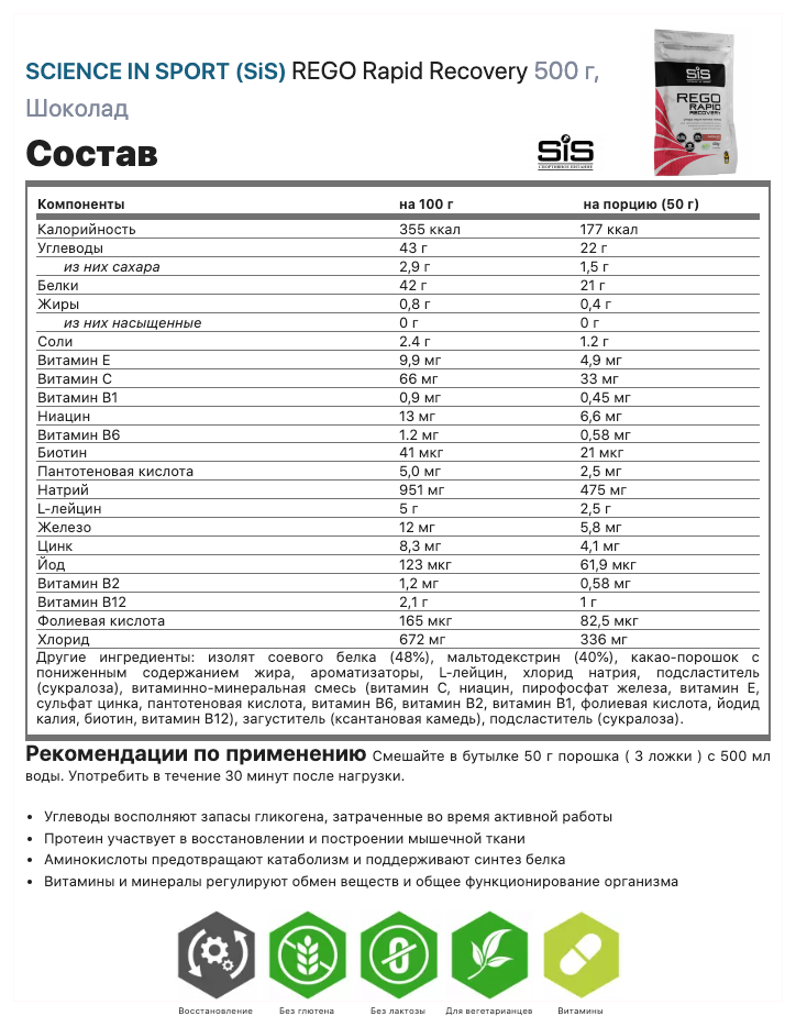 Ниже Вы можете прочитать отзывы на Восстановление SCIENCE IN SPORT (SiS) REGO Rapid Recovery 500 г, Шоколад, ознакомится с подробными характеристиками, посмотреть интересные обзоры и фотографии на Восстановление SCIENCE IN SPORT (SiS) REGO Rapid Recovery 500 г, Шоколад.