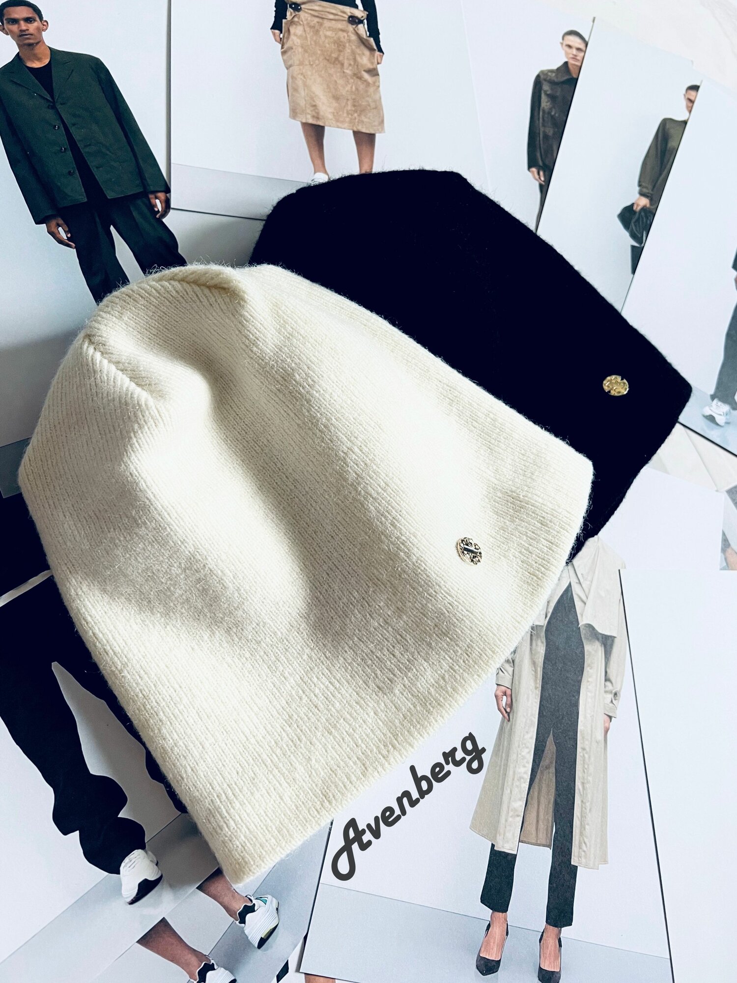 Купить Шапка-бини AV by Avenberg Оверсайз для взрослых и детей, размер ONE SIZE, бежевый, белый