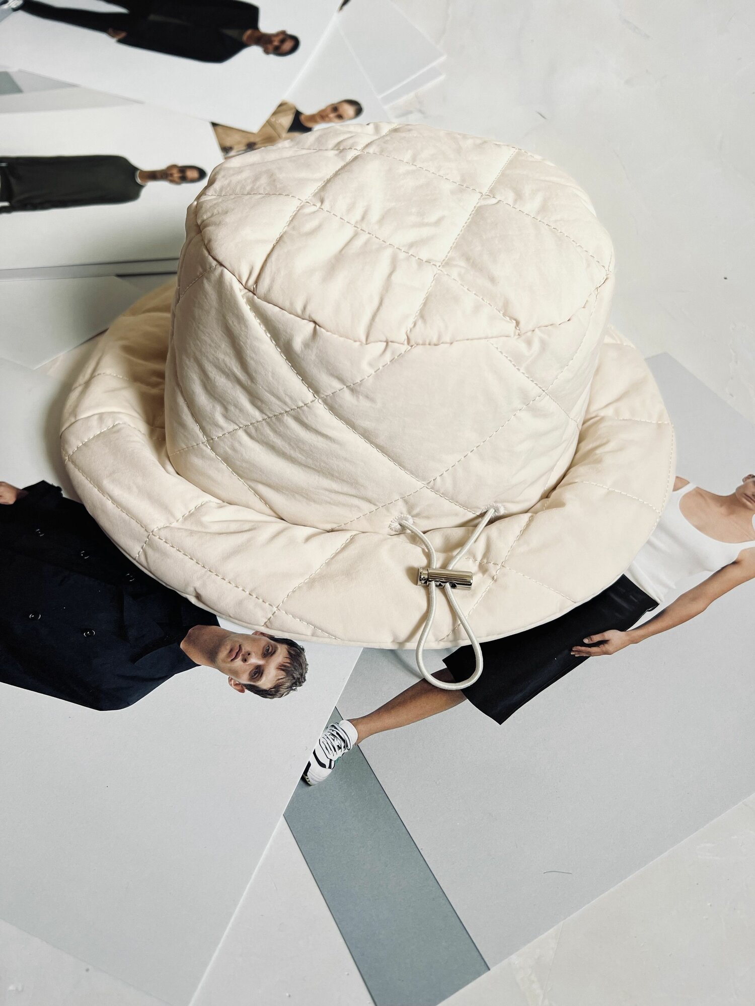 Шапка-бини AV by Avenberg Оверсайз для взрослых и детей, размер ONE SIZE, бежевый, белый