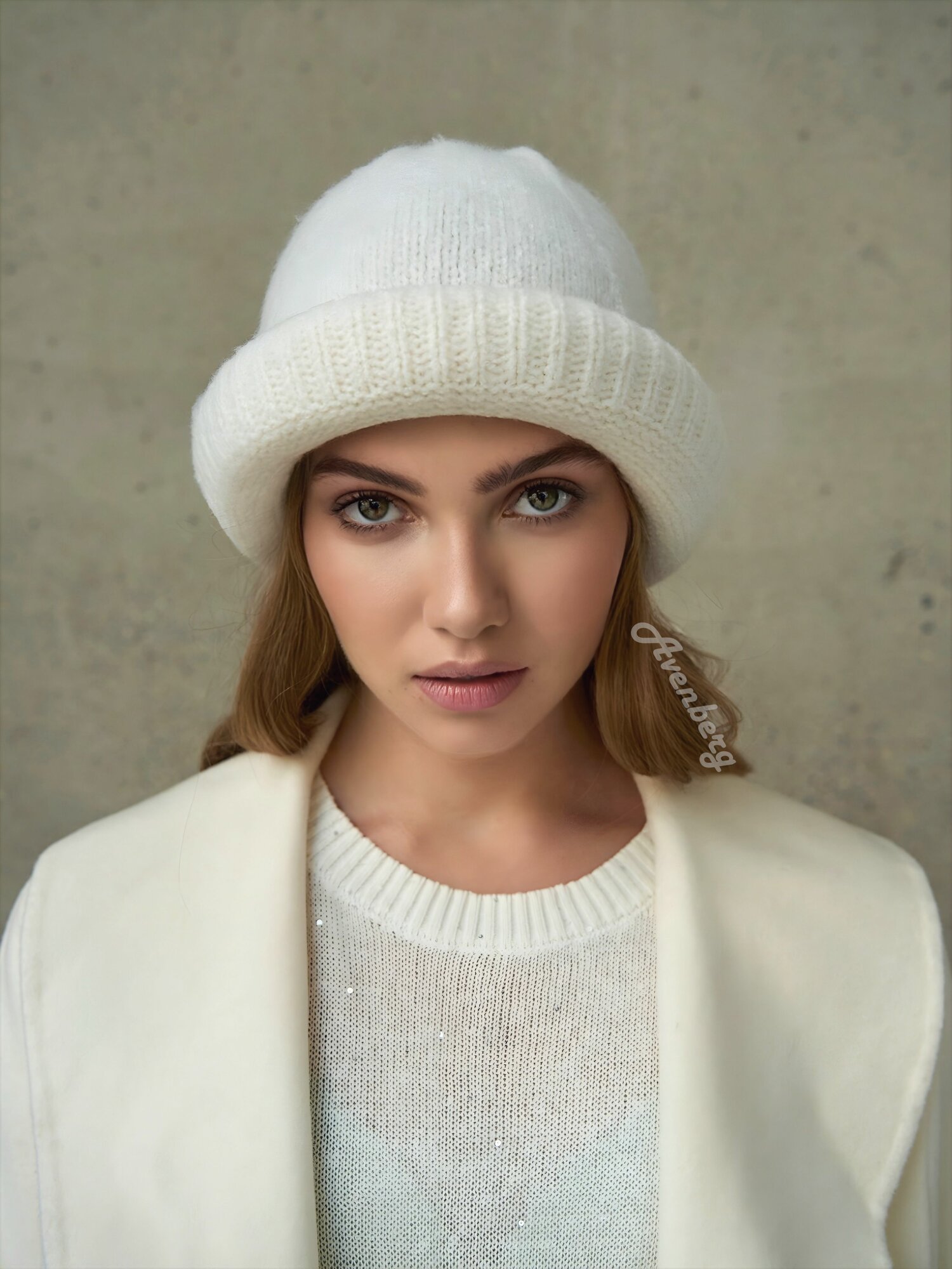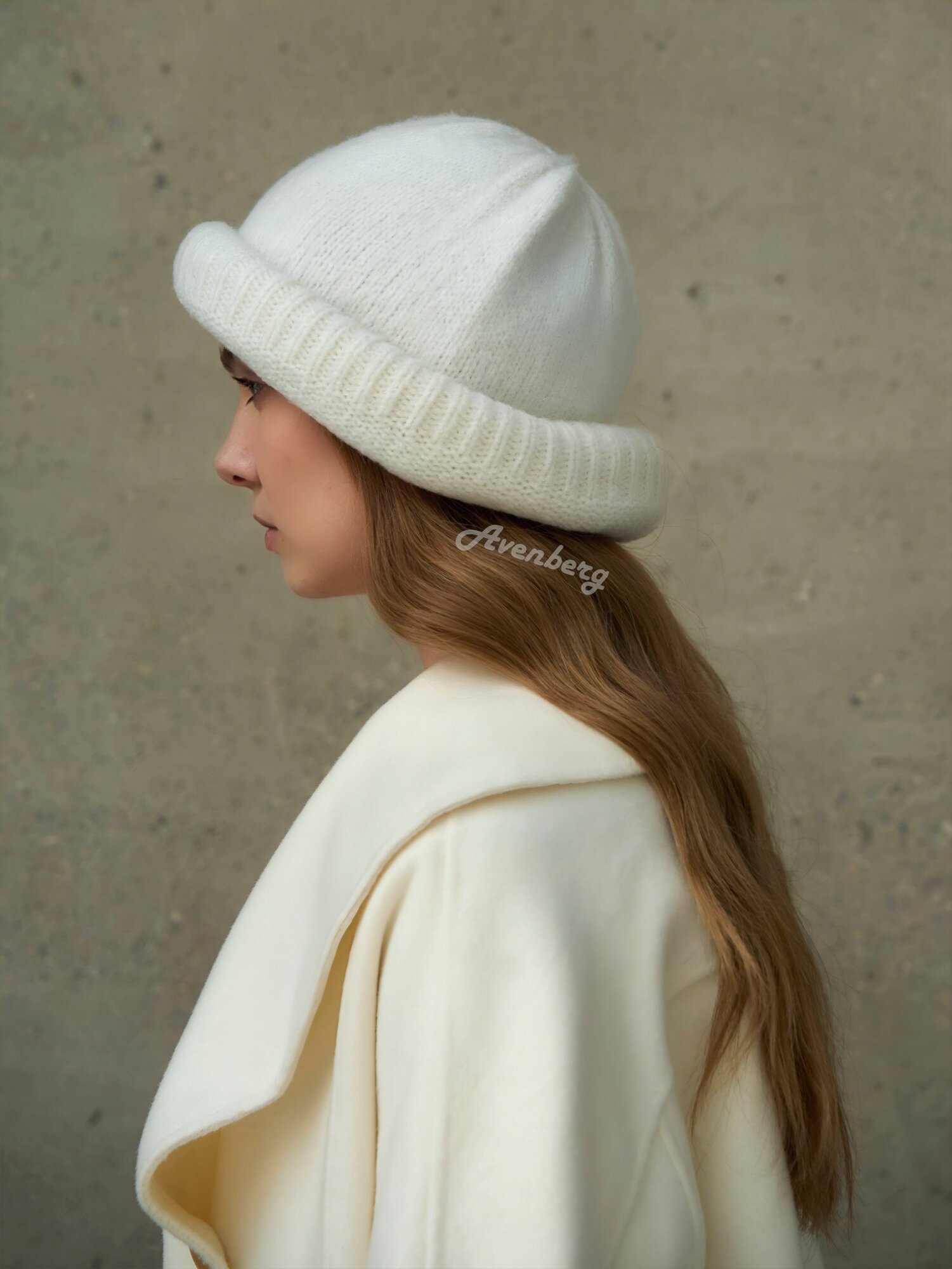 Шапка-бини AV by Avenberg Оверсайз для взрослых и детей, размер ONE SIZE, бежевый, белый