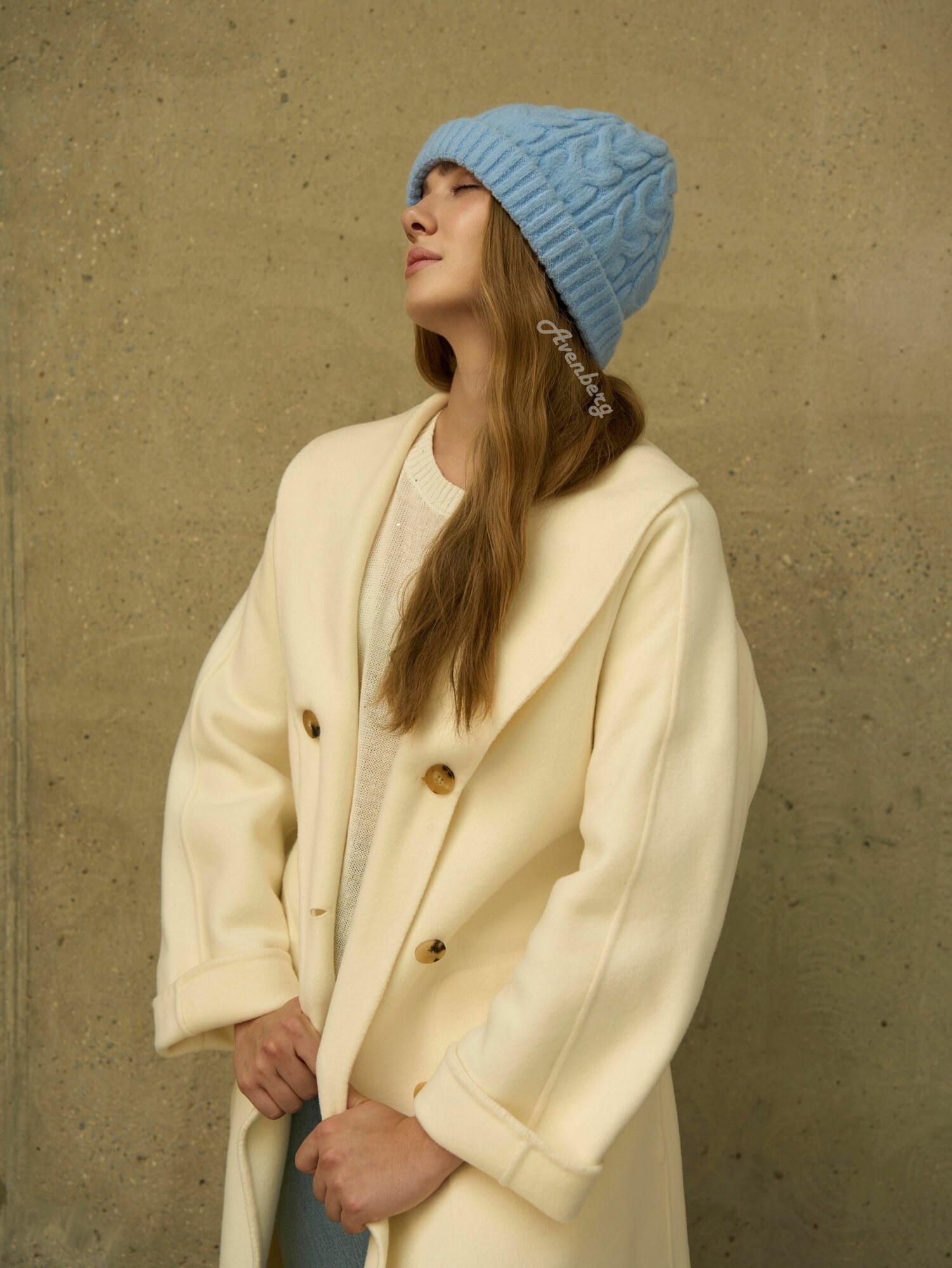 Шапка-бини AV by Avenberg Оверсайз для взрослых и детей, размер ONE SIZE, бежевый, белый
