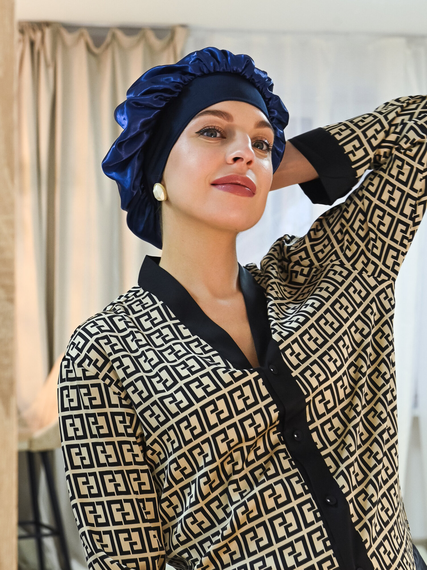 СохранитьШапочка для сна WMA STORE, атласная, шелковая, синяя, с эластичной лентой, женская, 52-60 интересное: