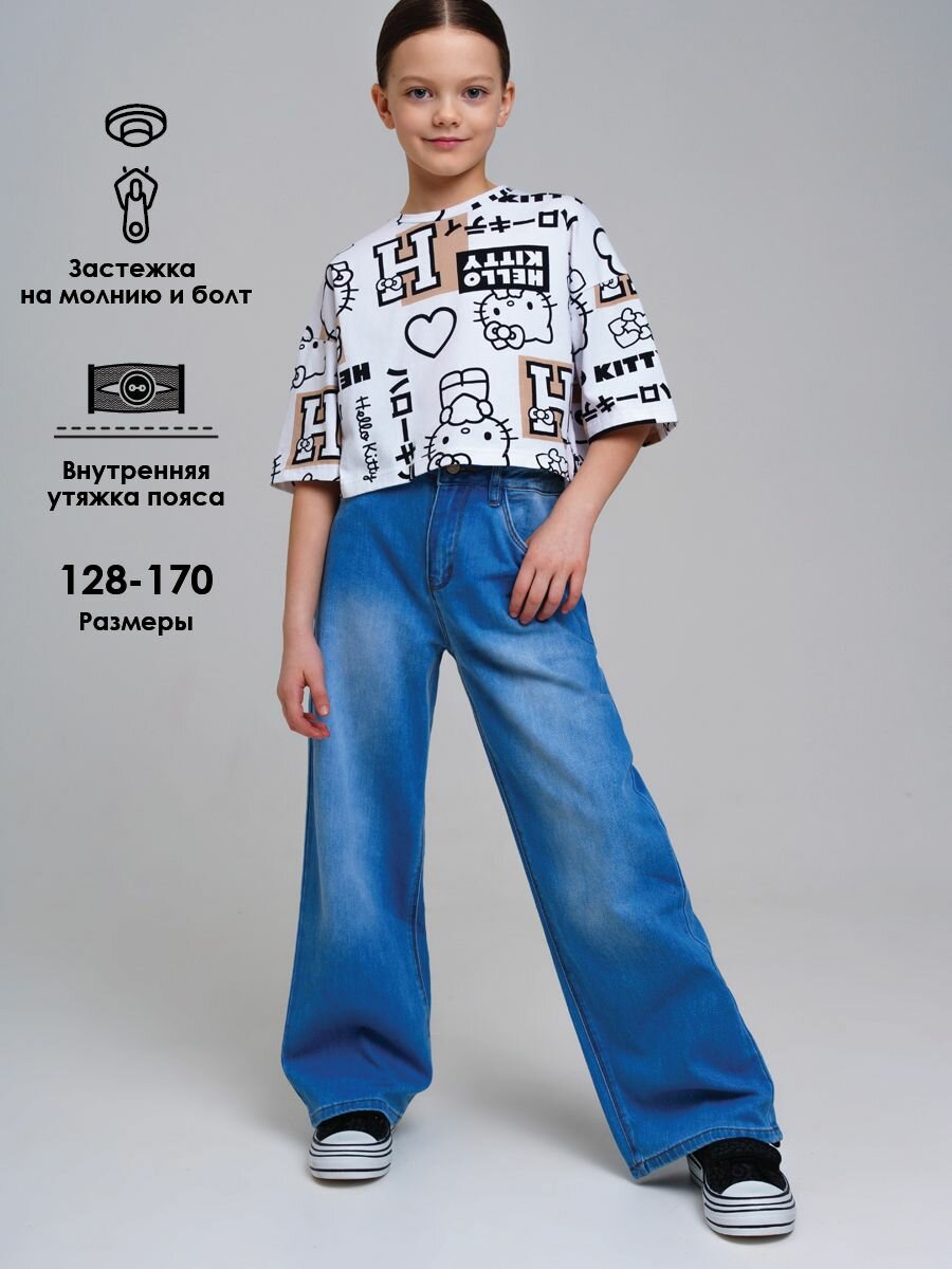 Джинсы playToday Весна-лето 2025, размер 152, голубой интересное: