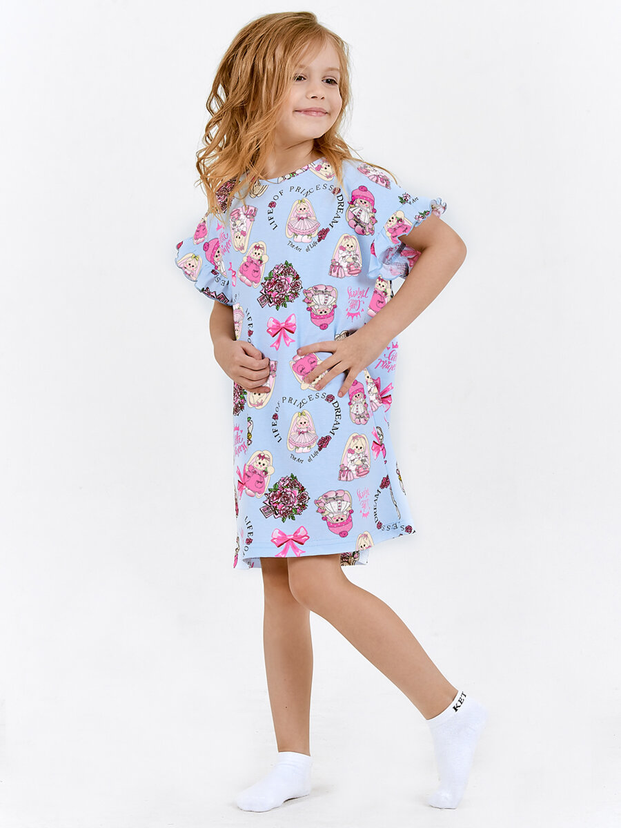 Сорочка KETMIN ночная детская хлопок ночнушка, размер 128, голубой