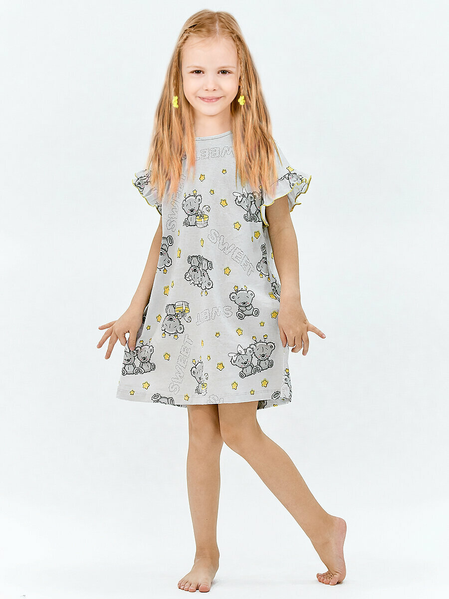 Сорочка KETMIN ночная детская хлопок ночнушка, размер 128, серый