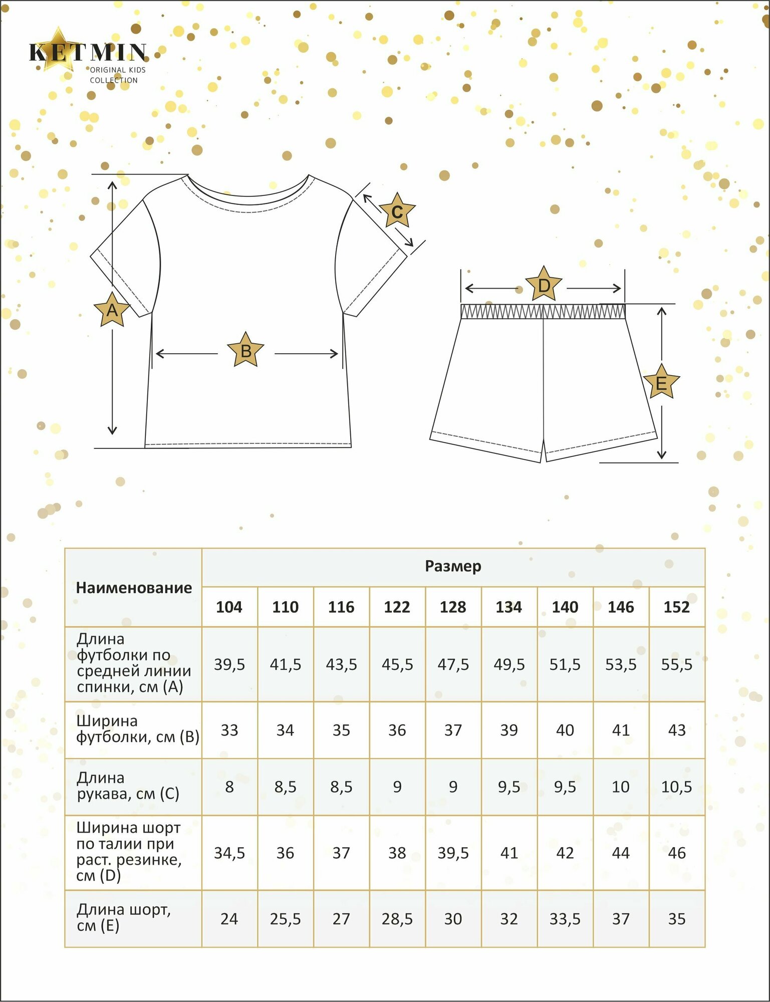 Пижама KETMIN с шортами детская хлопок, размер 128, белый