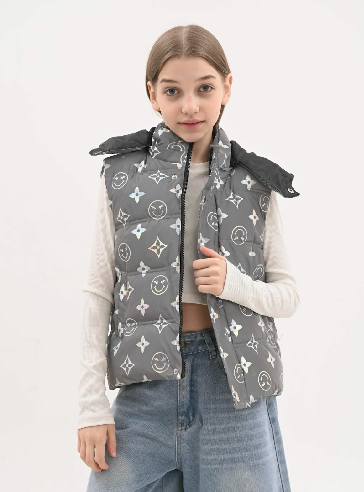 Жилет Осень-зима 2025, размер M, серебро