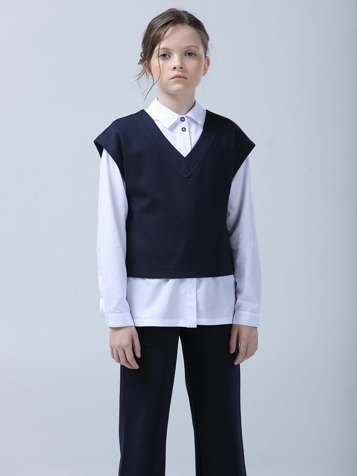 Школьный жилет LADNO Весна - лето 2025, размер 152/76, темно-синий интересное: