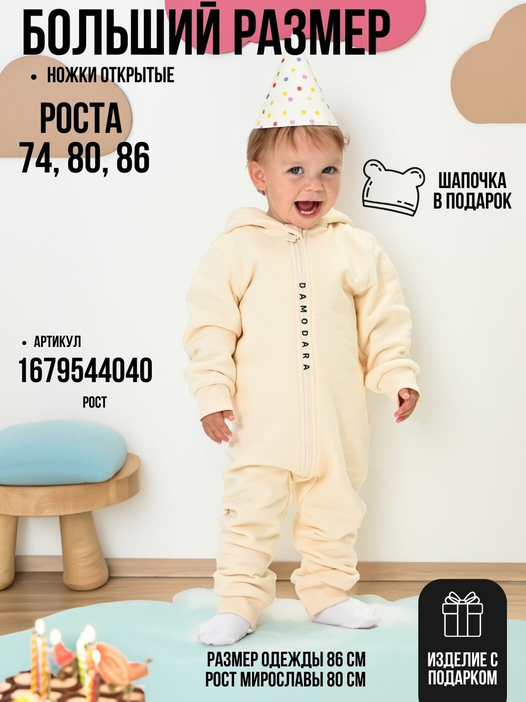 Комбинезон MaLeK BaBy Осень-зима 2025, размер 86, светло-бежевый