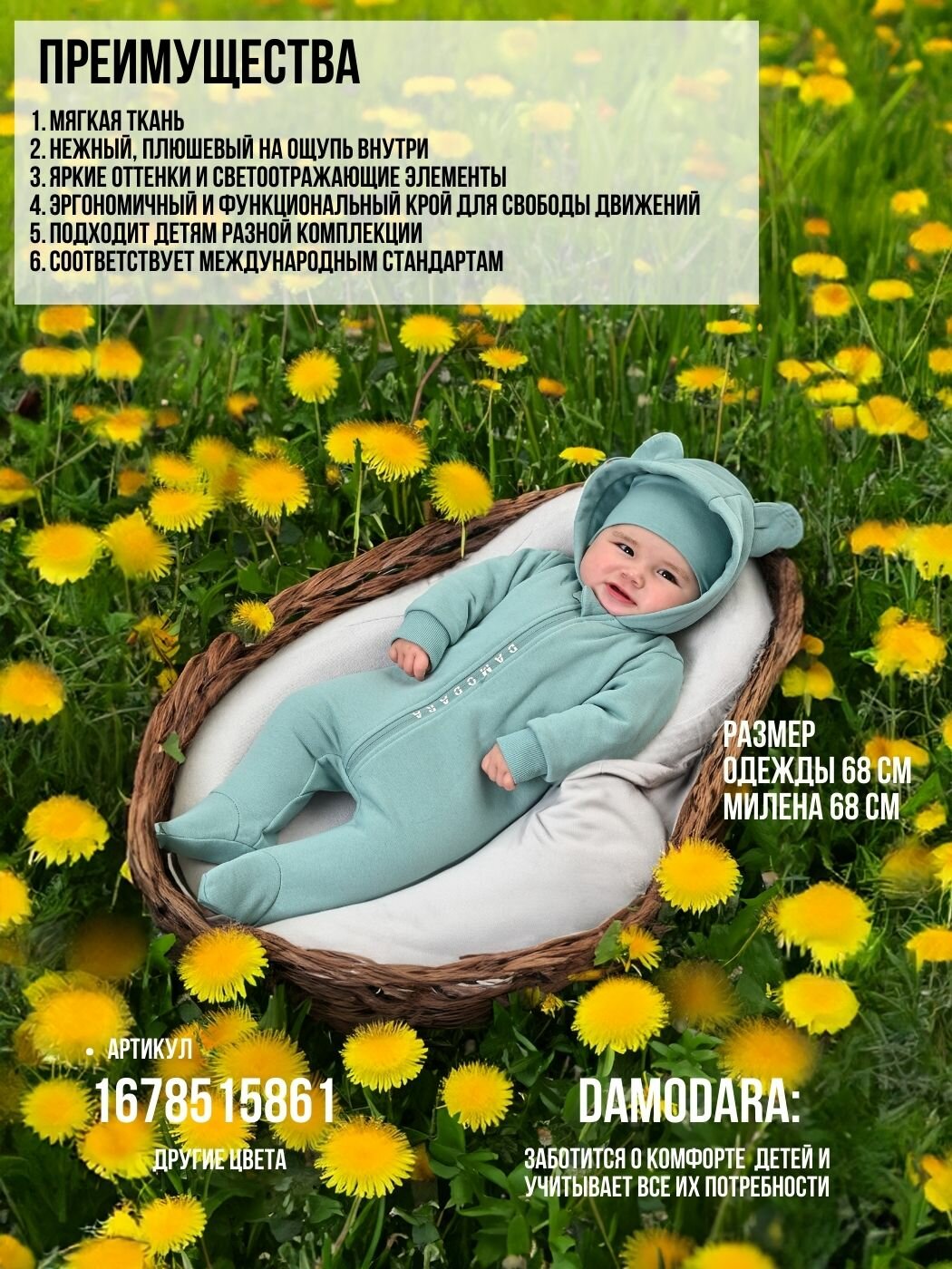 Комбинезон MaLeK BaBy Осень-зима 2025, размер 56, светло-бежевый интересное: