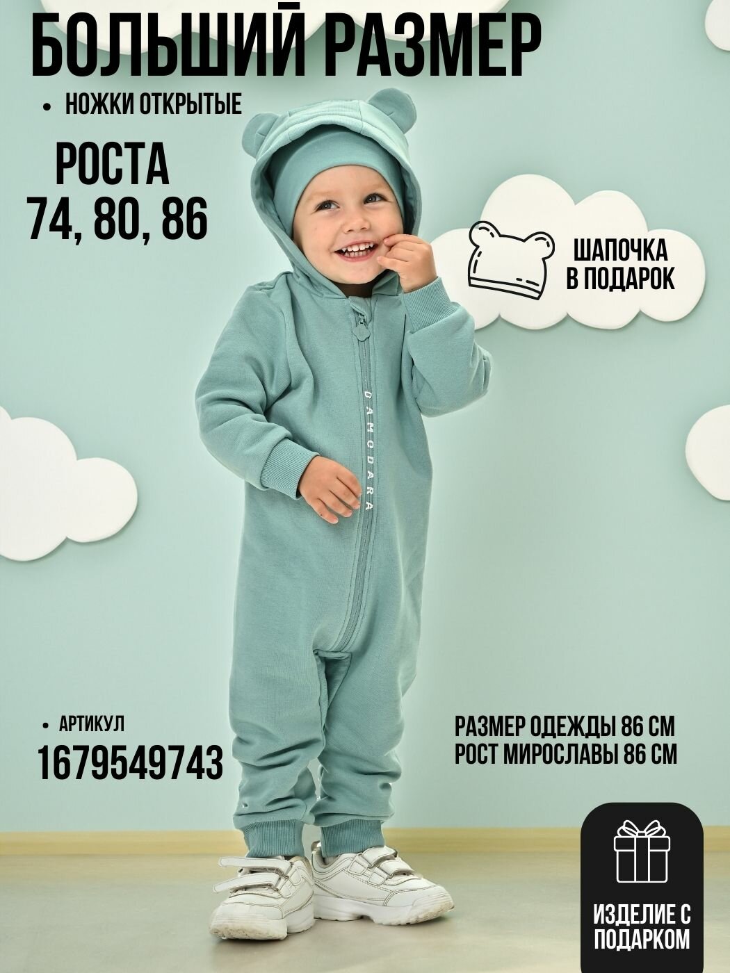 Комбинезон DAMODARA Осень-зима 2025, размер 80, мультиколор