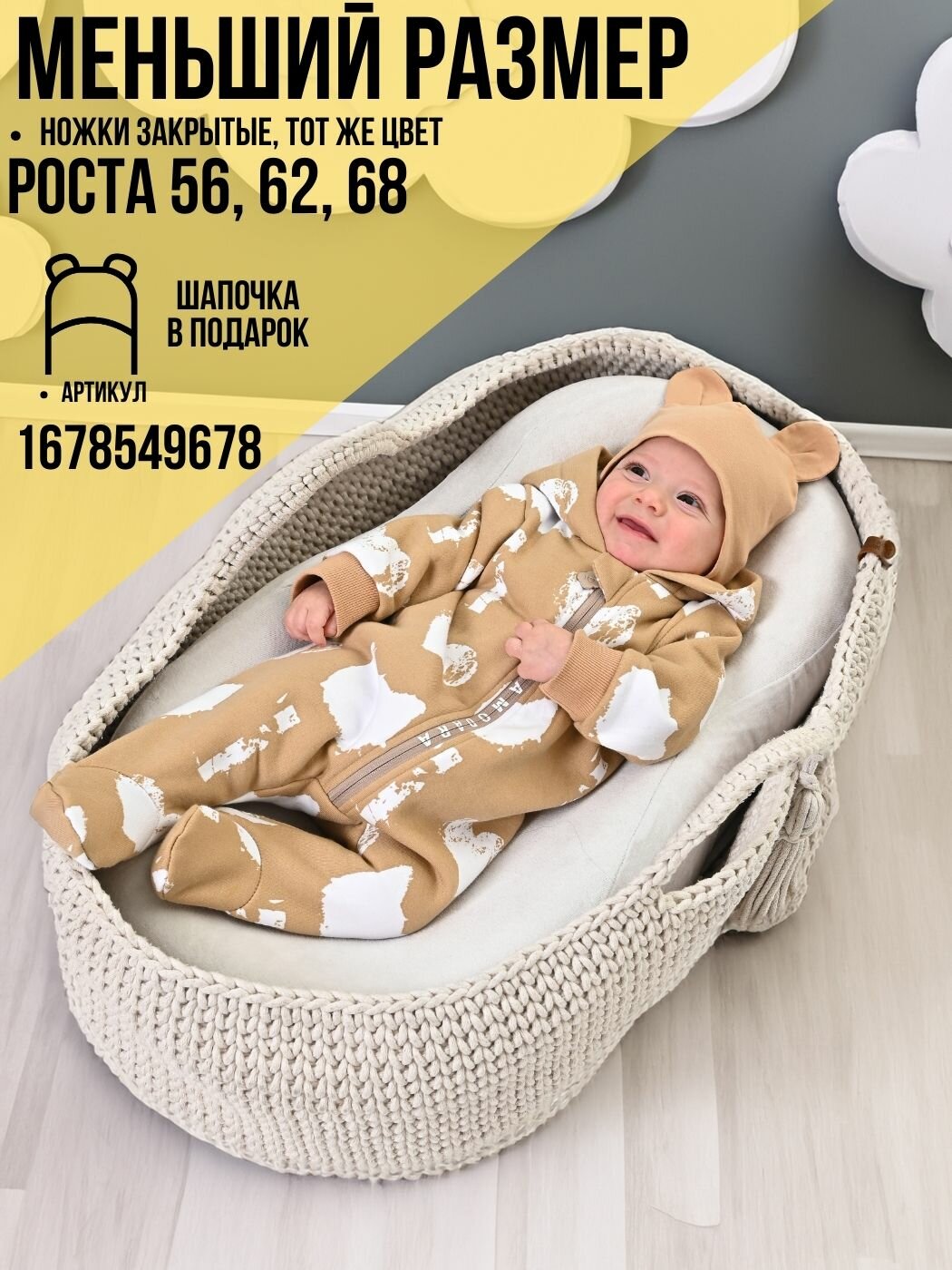 Комбинезон DAMODARA Осень-зима 2025, размер 80, светло-бежевый