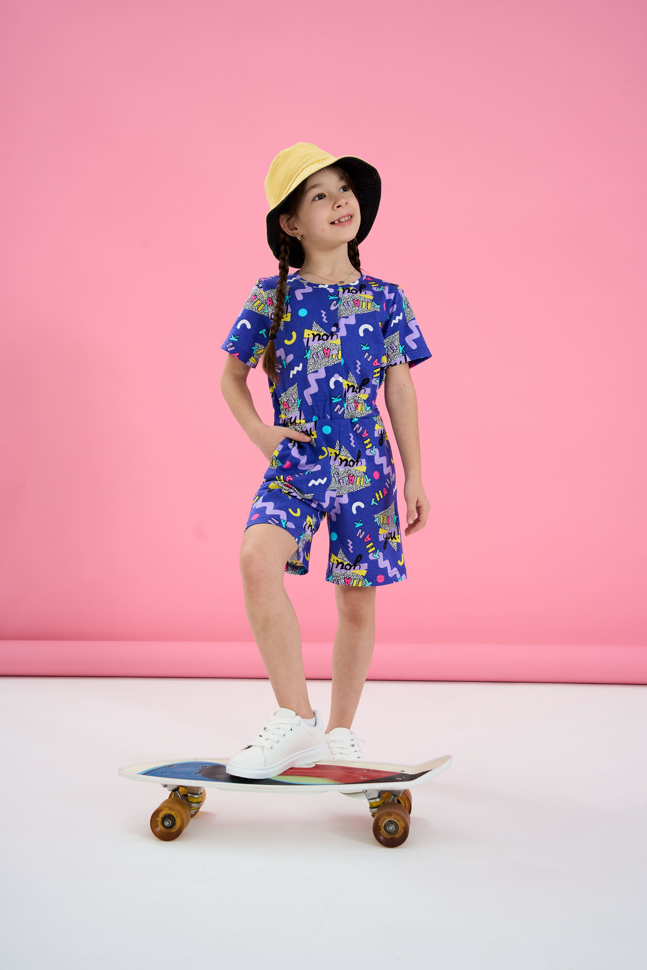 Комбинезон Веселый Малыш Весна-лето 2025, открытая стопа, размер 146, синий