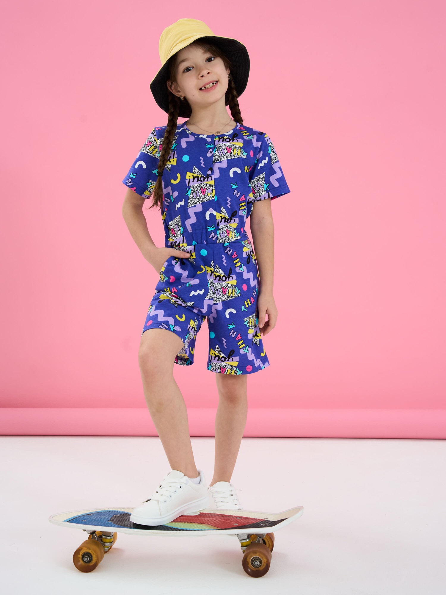 Комбинезон Веселый Малыш Весна-лето 2025, открытая стопа, размер 134, синий