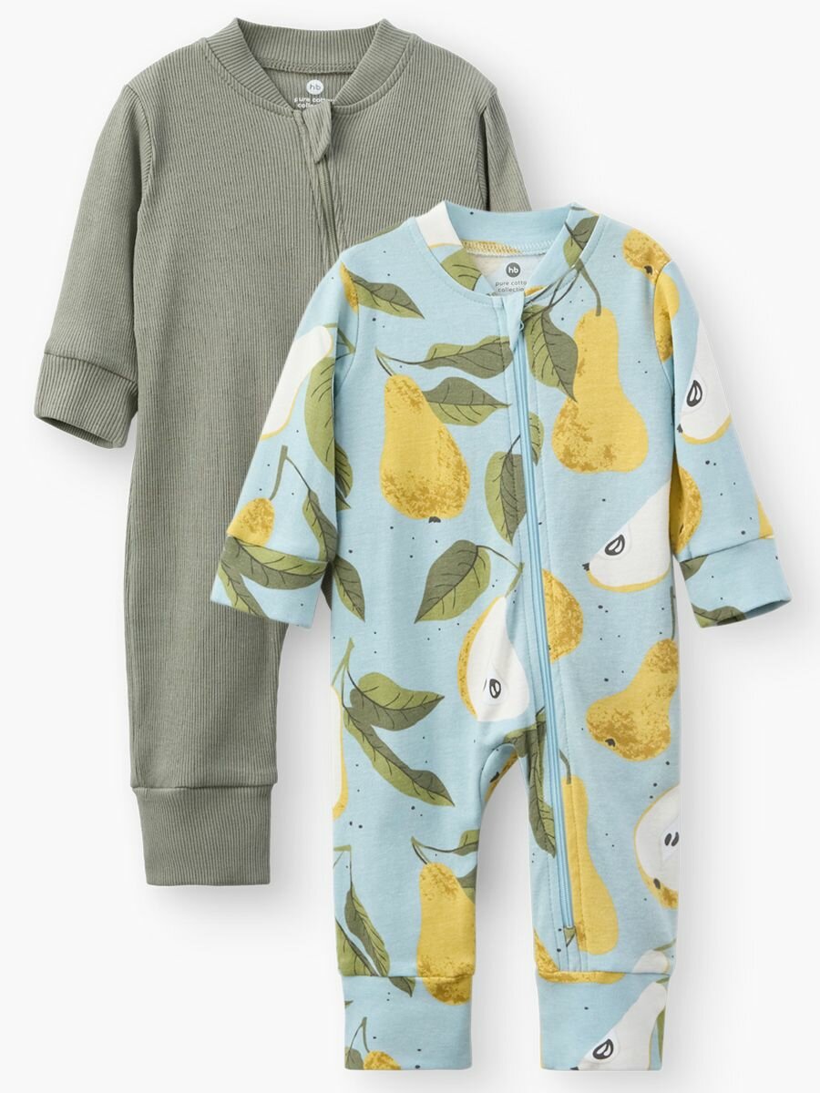 Купить Комбинезон Happy Baby, комплект из 2 шт., размер 68, голубой, зеленый, желтый