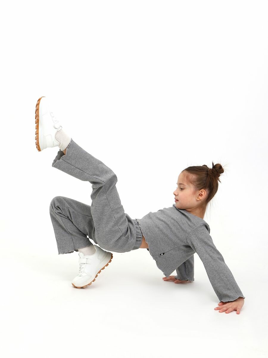 Комплект одежды КитаМиш домашний трикотажный для девочки, размер 36-128, серый меланж/темно-серый